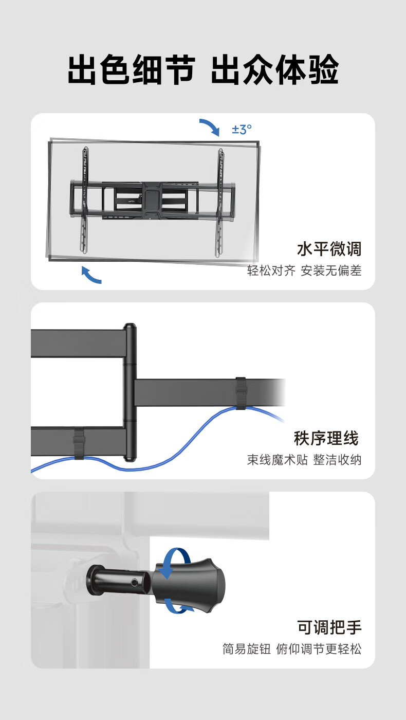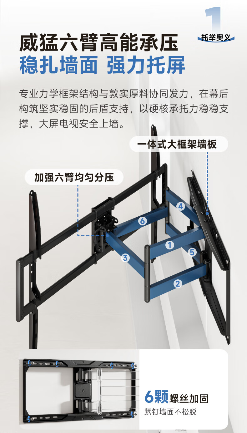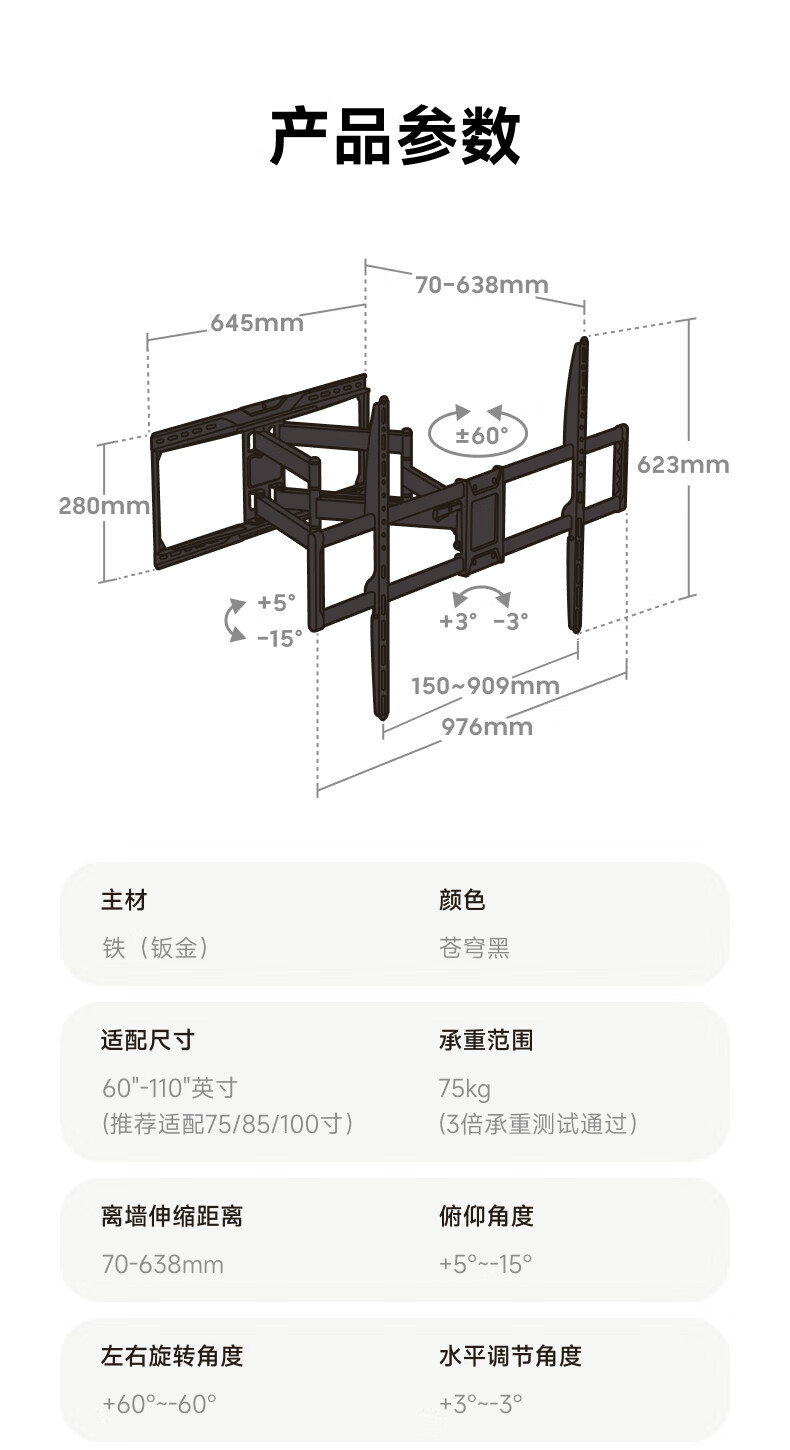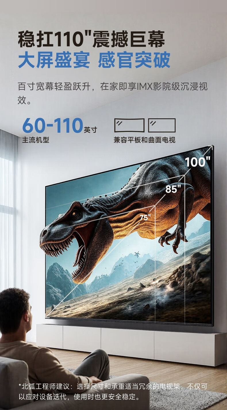Brateck (60-110) Northern Arc TV Stand 65 Rotating Telescopic Stand 70 TV Mount TV Bracket 75 Flat Screen TV Wall Mount 85 Hisense/Xiaomi X85 Sky Black