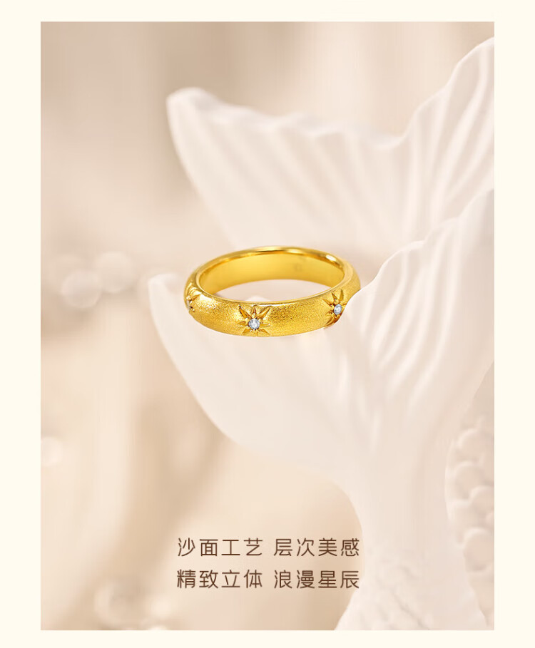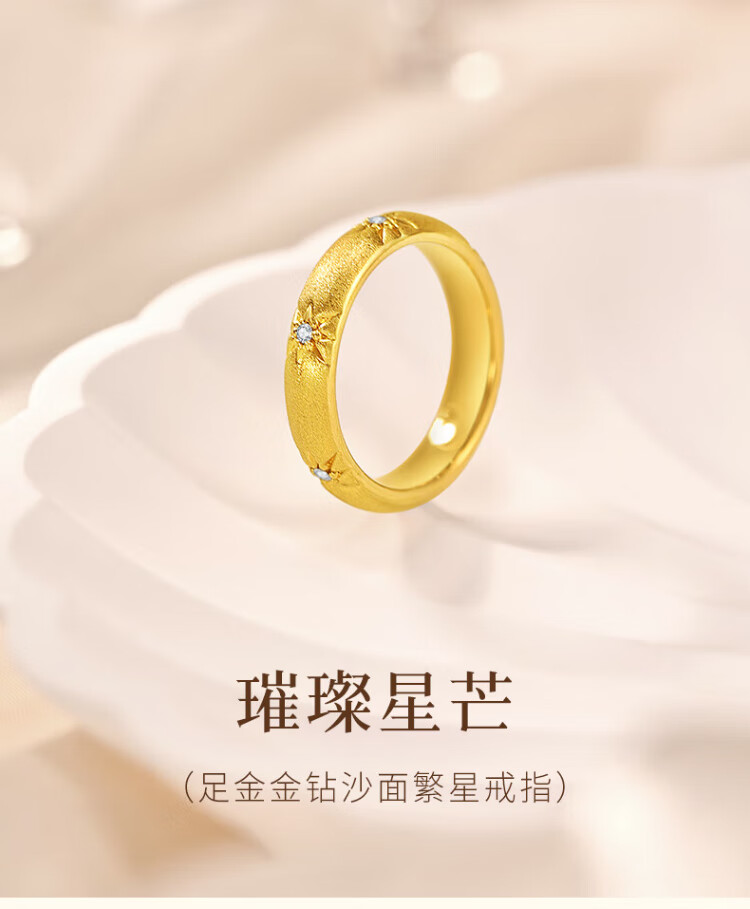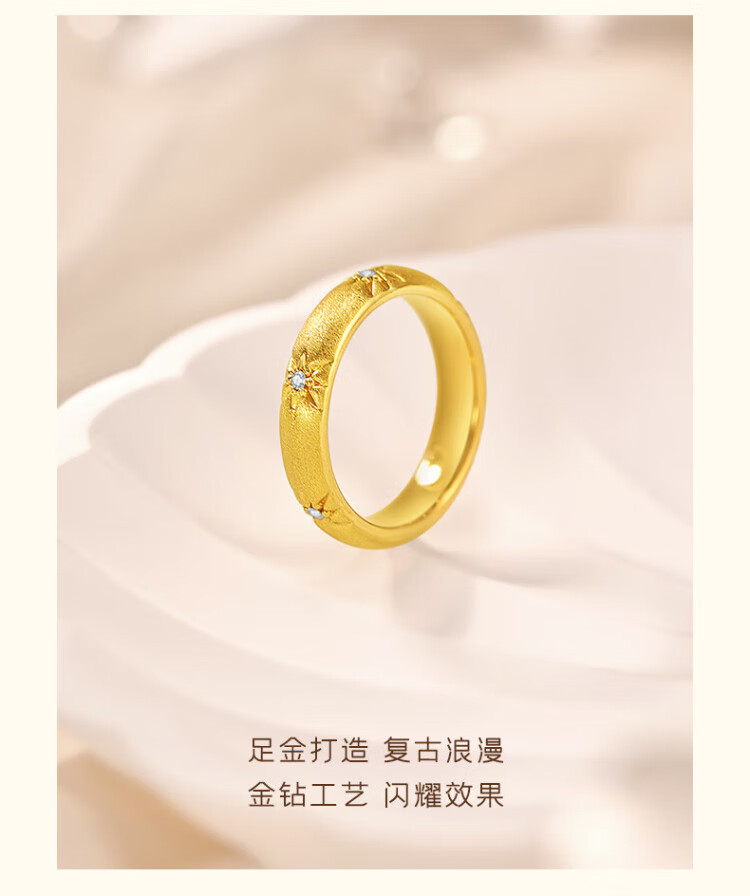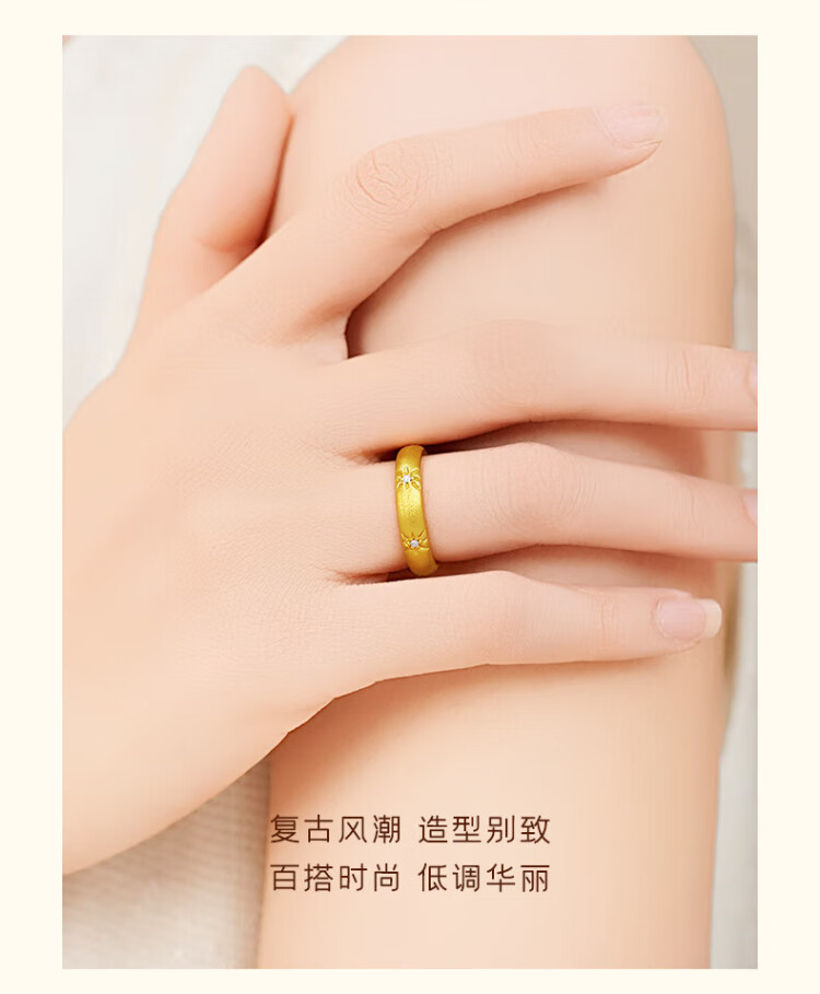 Old temple pure gold gold inlaid gold gold inlaid retro ring gold diamond inlaid birthday gift for girlfriend Chinese Valentine's Day gift