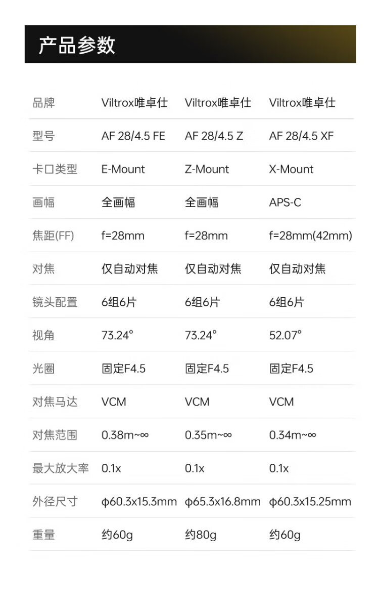 VILTROX AF 28mm F4.5 FE Sony full-frame autofocus lightweight on-hook biscuit head suitable for A7M4 A7CII ZVE1 A7CR mirrorless camera