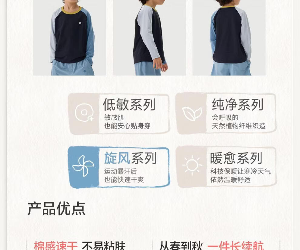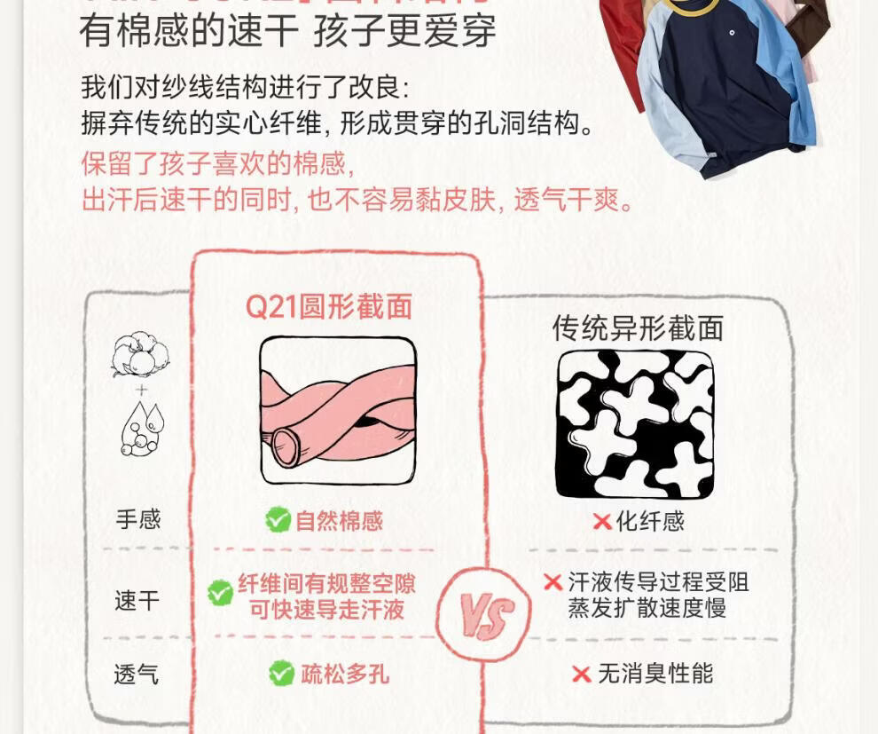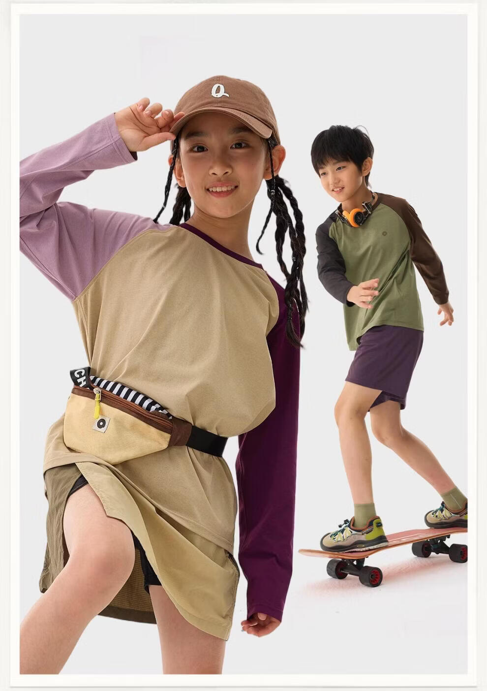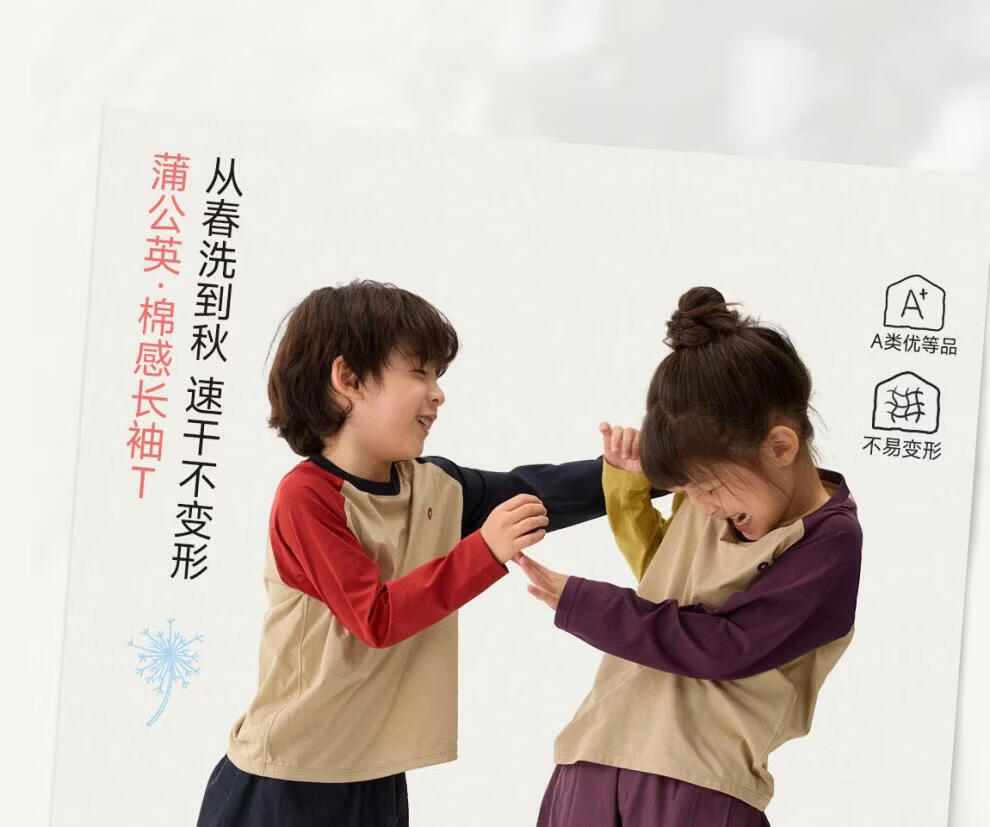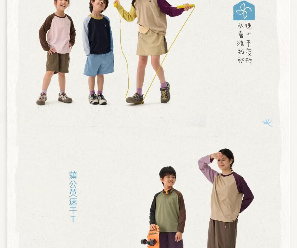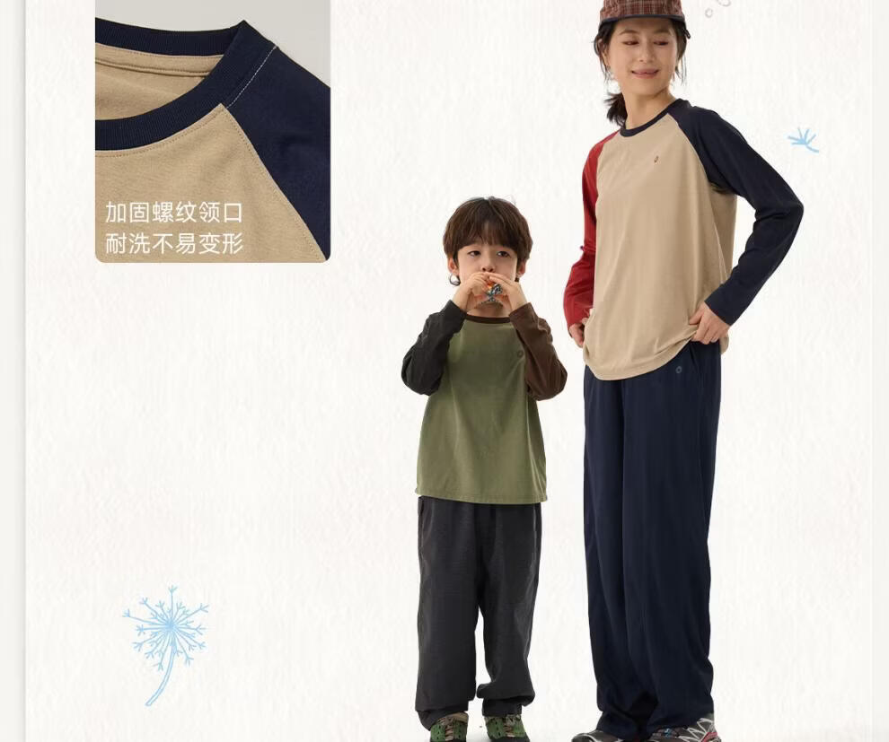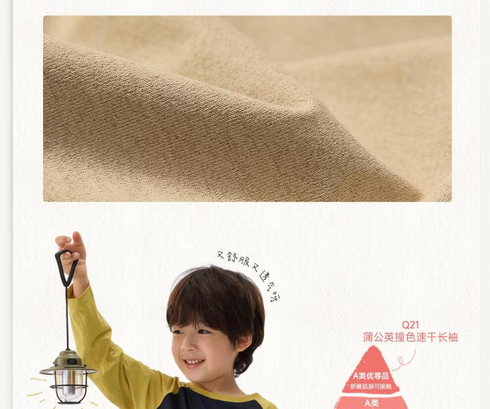 Q21 Dandelion sweat-wicking quick-drying breathable T-shirt for boys and girls long-sleeved spring new color matching bottoming top