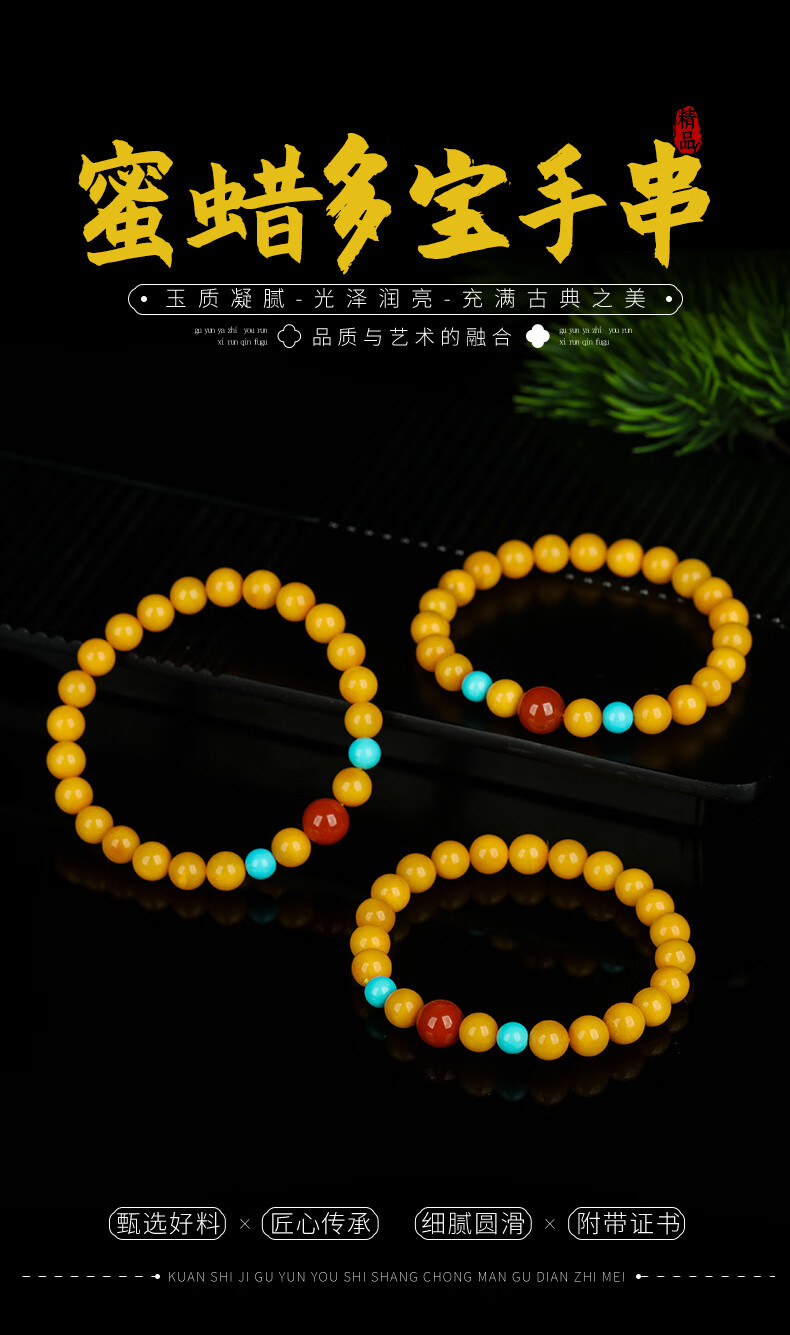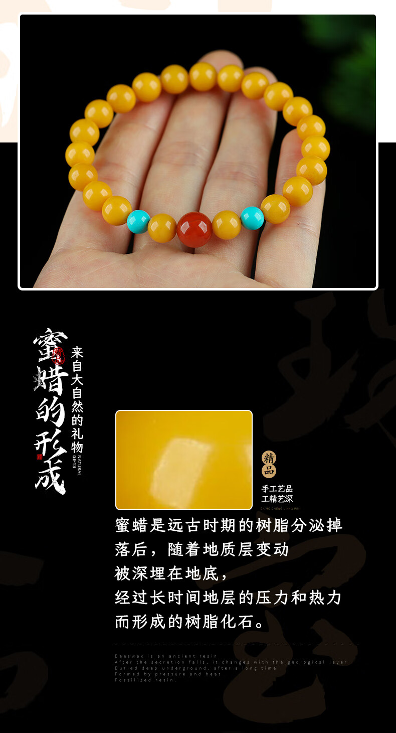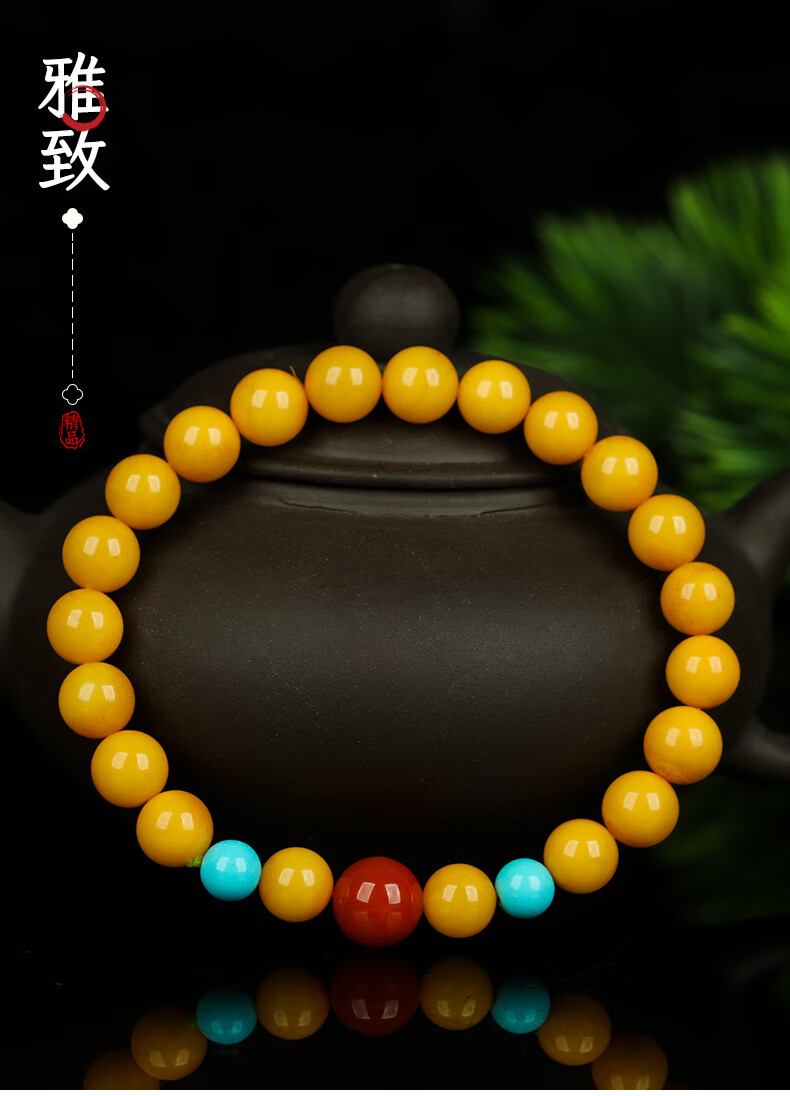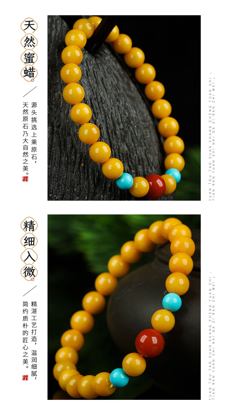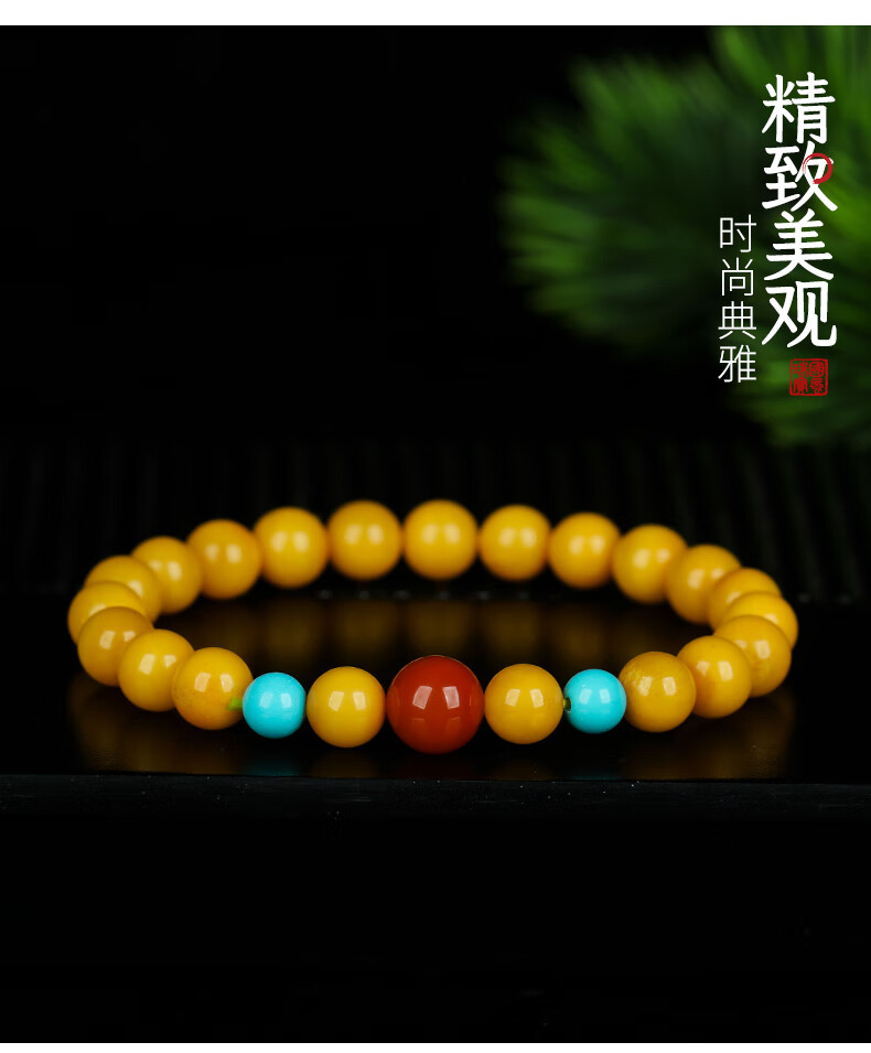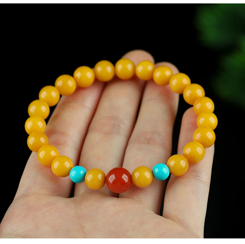OUCERNY beeswax bracelet natural amber raw stone full of honey chicken oil yellow old beeswax round beads south red multi-treasure diy cultural toy bracelet