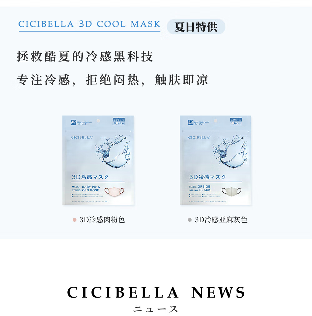 CICIBELLA mask Japan 3D three-dimensional contrasting color beauty anti-bacterial dust-proof unisex breathable summer internet celebrity new style 10 pieces
