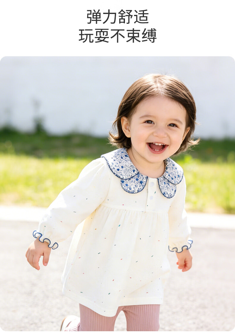 Childlike love for baby girls spring and autumn elastic long-sleeved T-shirts children's bottoming shirts fashionable and versatile baby lace collar tops spring clothes