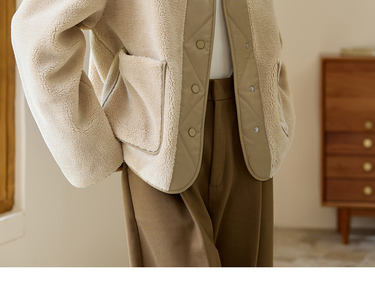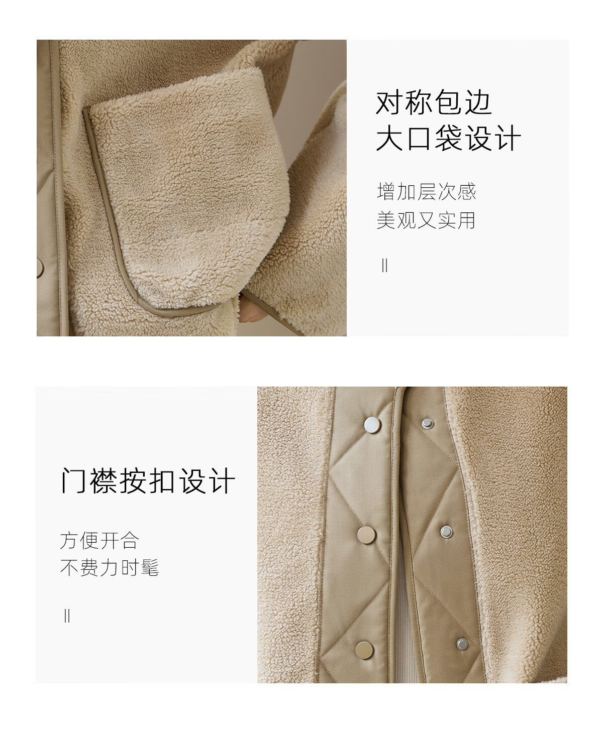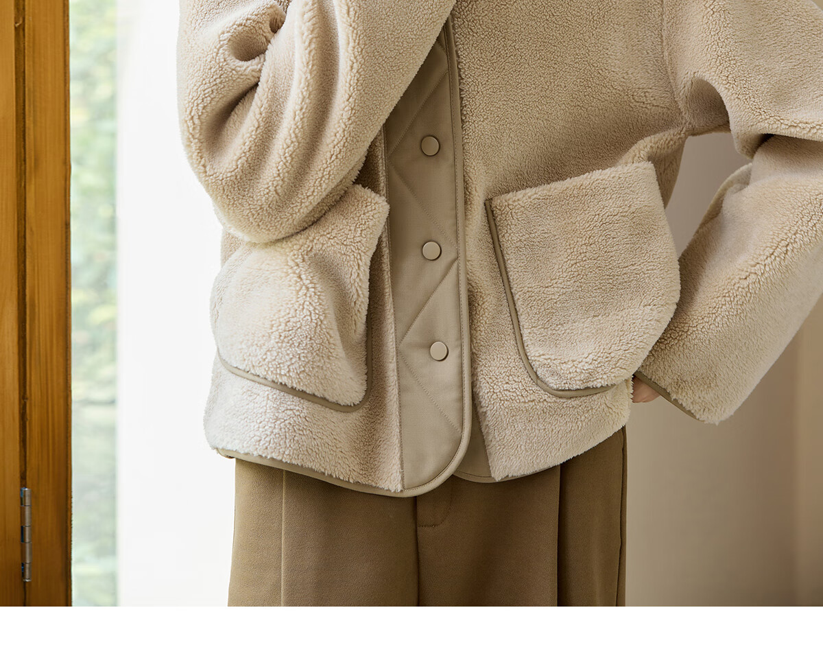 Chushen autumn and winter thick coat for women with lapel and double pockets, comfortable and versatile, warm and thick imitation lamb wool top S144F6006