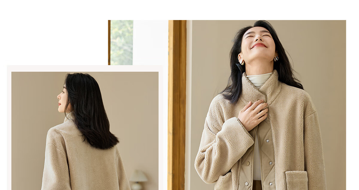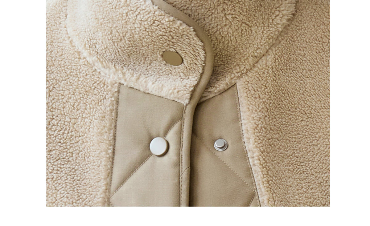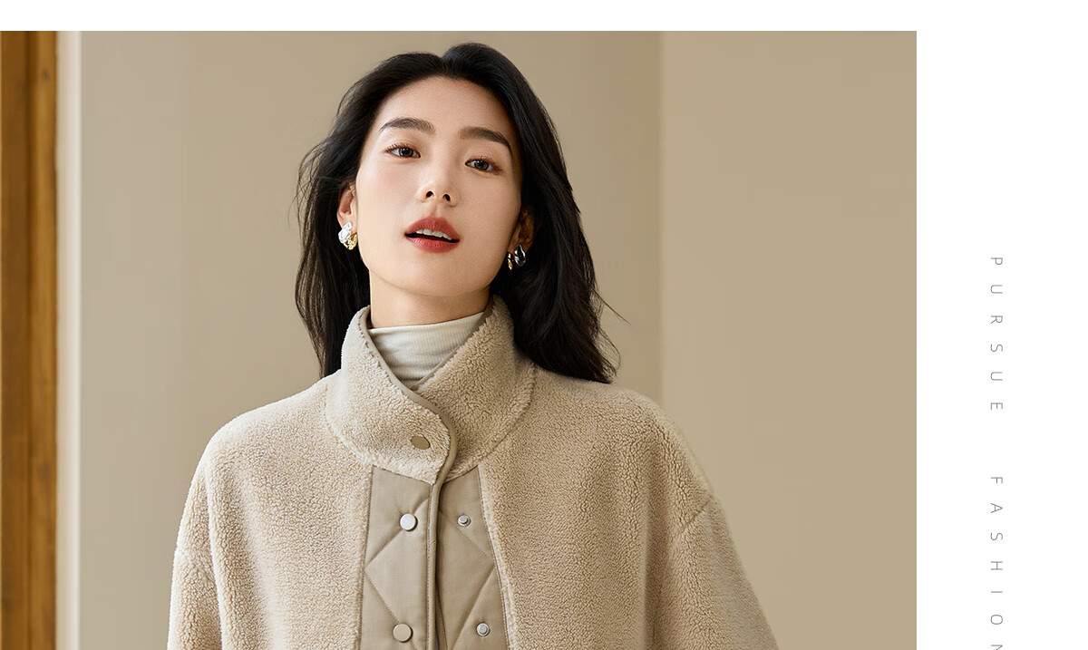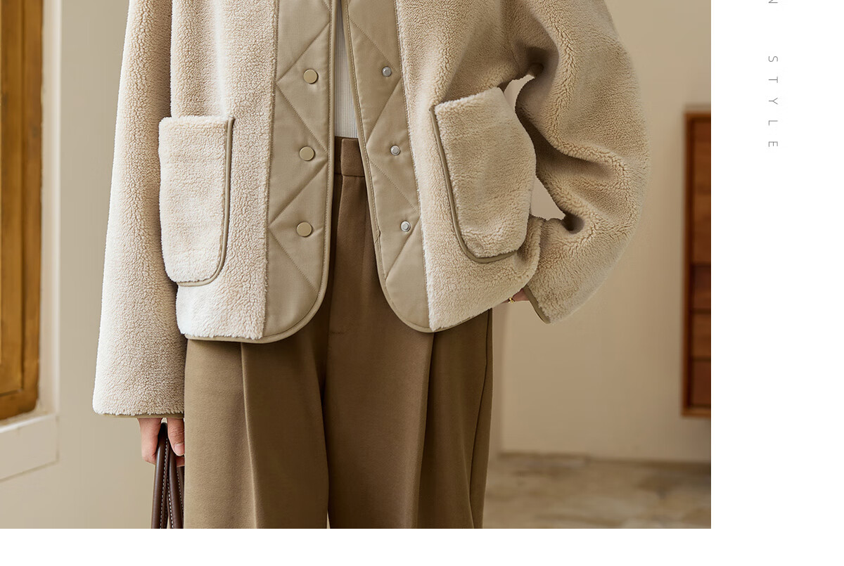 Chushen autumn and winter thick coat for women with lapel and double pockets, comfortable and versatile, warm and thick imitation lamb wool top S144F6006