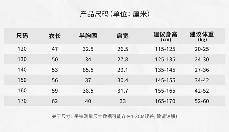 China (cm) 165 / 88-90 170 / 96-98 175 / 108-110 180 / 118-122 185 / 126-130