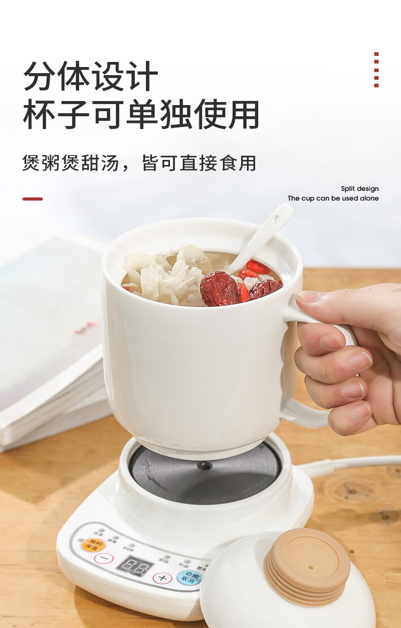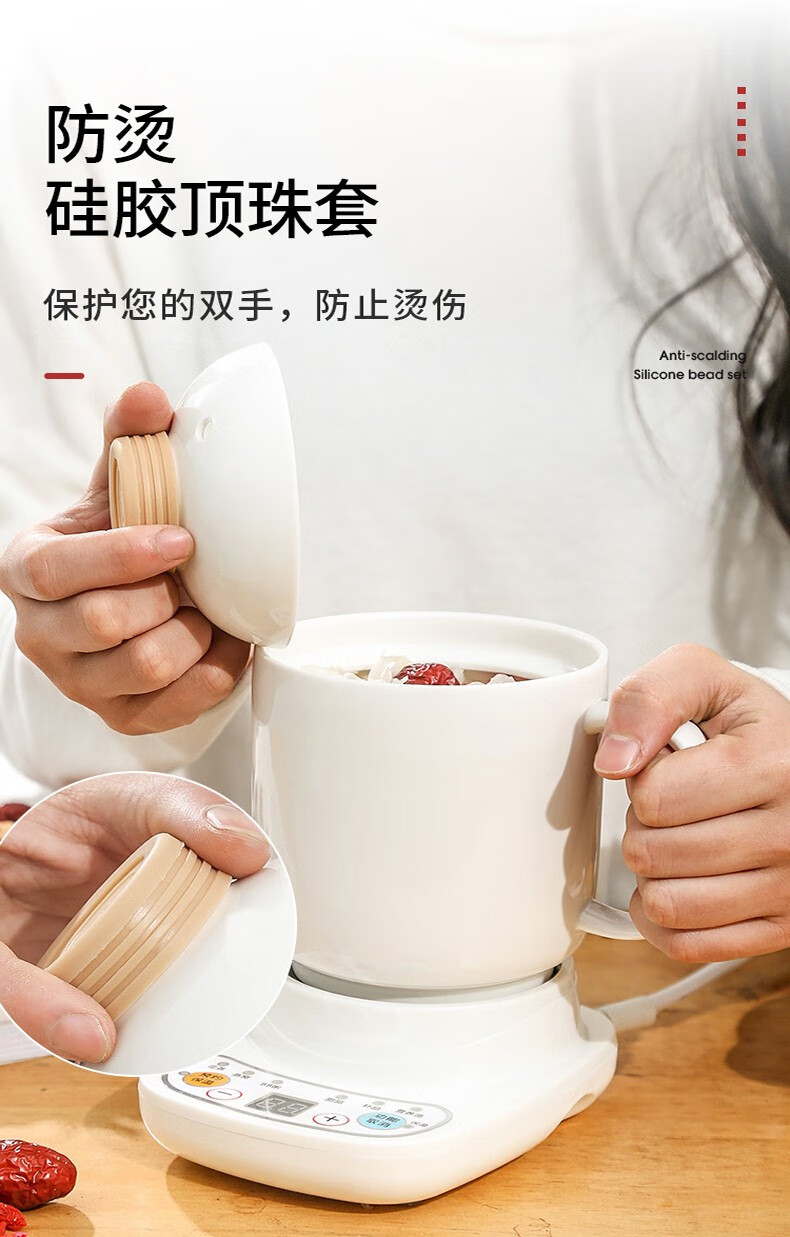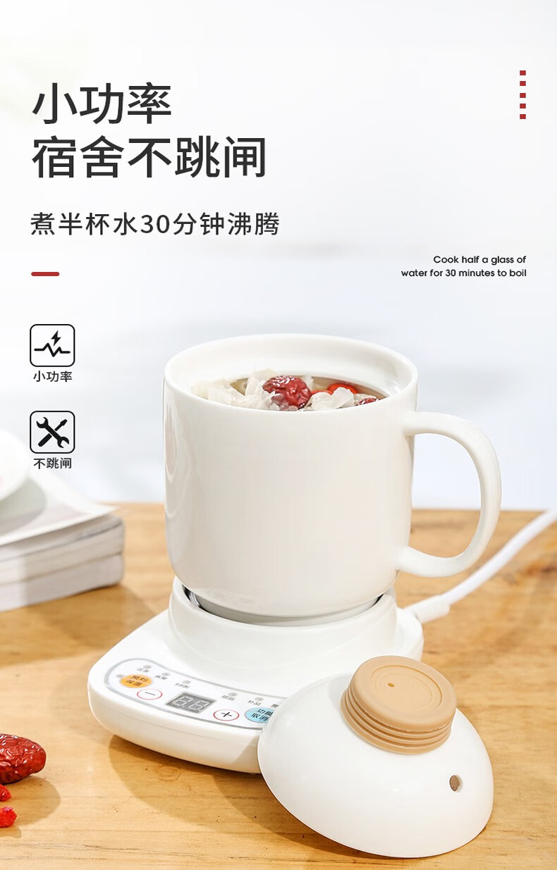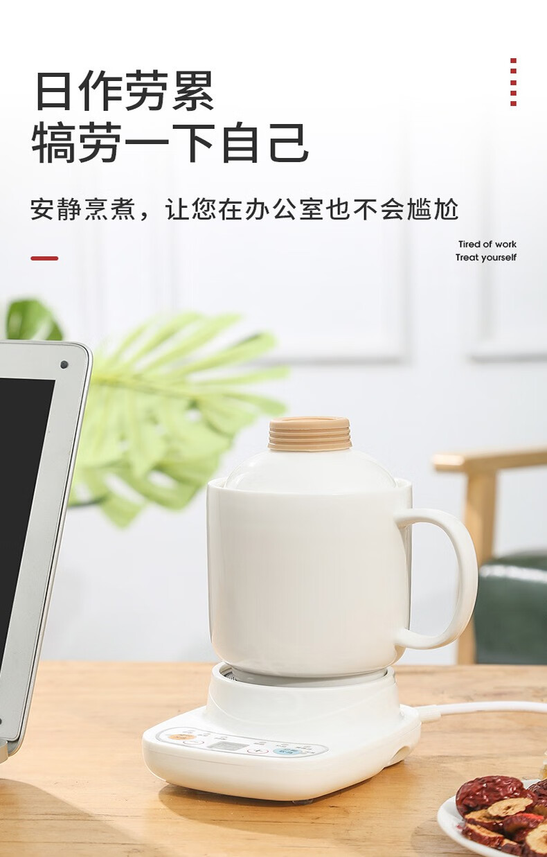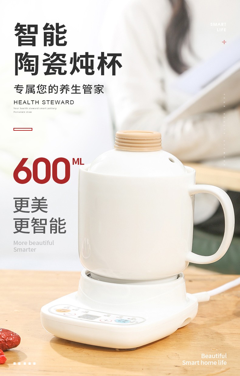 Little Pig Help Kitchen Health Cup Electric Stew Cup Office Small Electric Stew Cup Mini Ceramic Fully Automatic Dormitory Stew Pot Portable White 0.6L