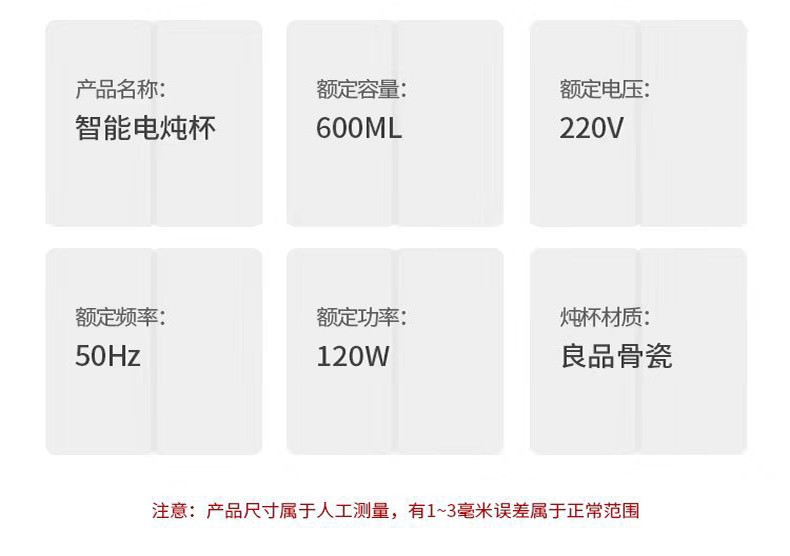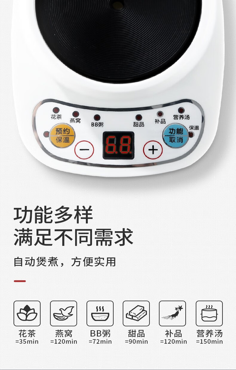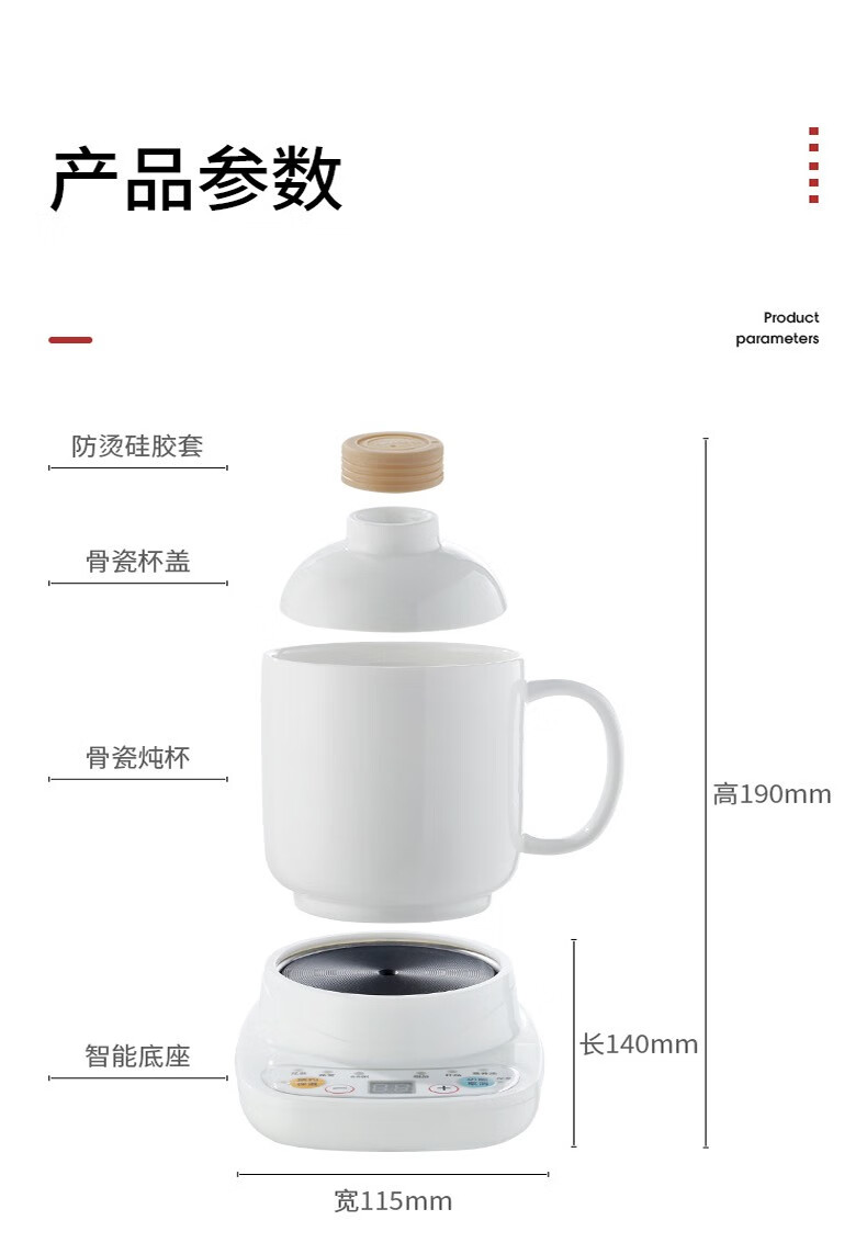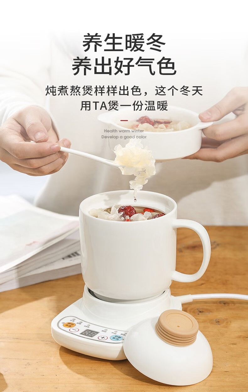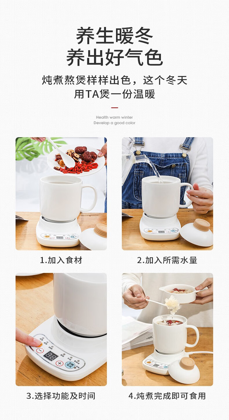Little Pig Help Kitchen Health Cup Electric Stew Cup Office Small Electric Stew Cup Mini Ceramic Fully Automatic Dormitory Stew Pot Portable White 0.6L