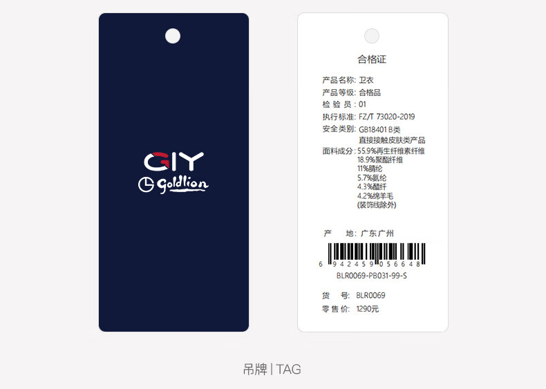 Goldlion GY sweatshirt men's new velvet thickened warm round neck pullover trendy sweatshirt jacket BLR0069-PB031