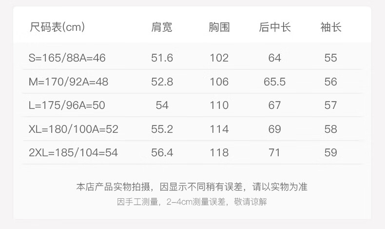 China(cm) 72-76 76-81 81-87 87-93 93-98