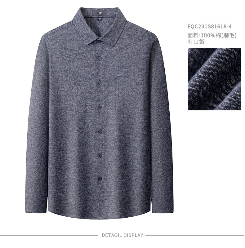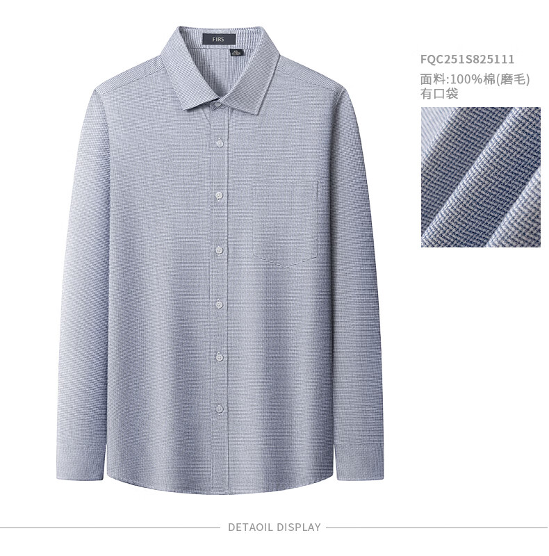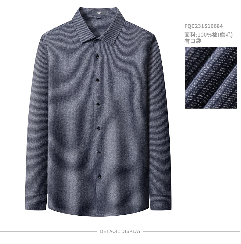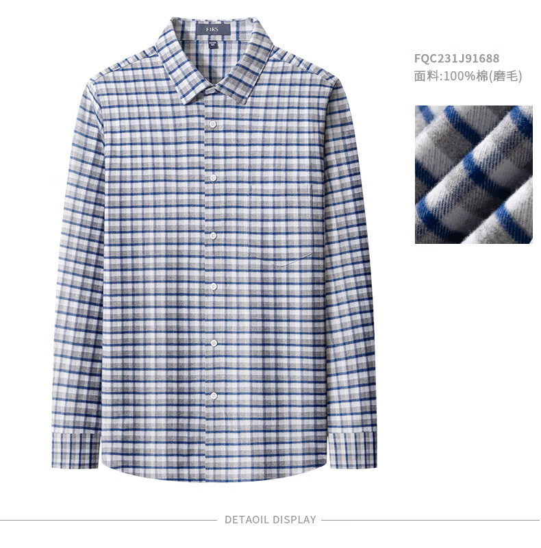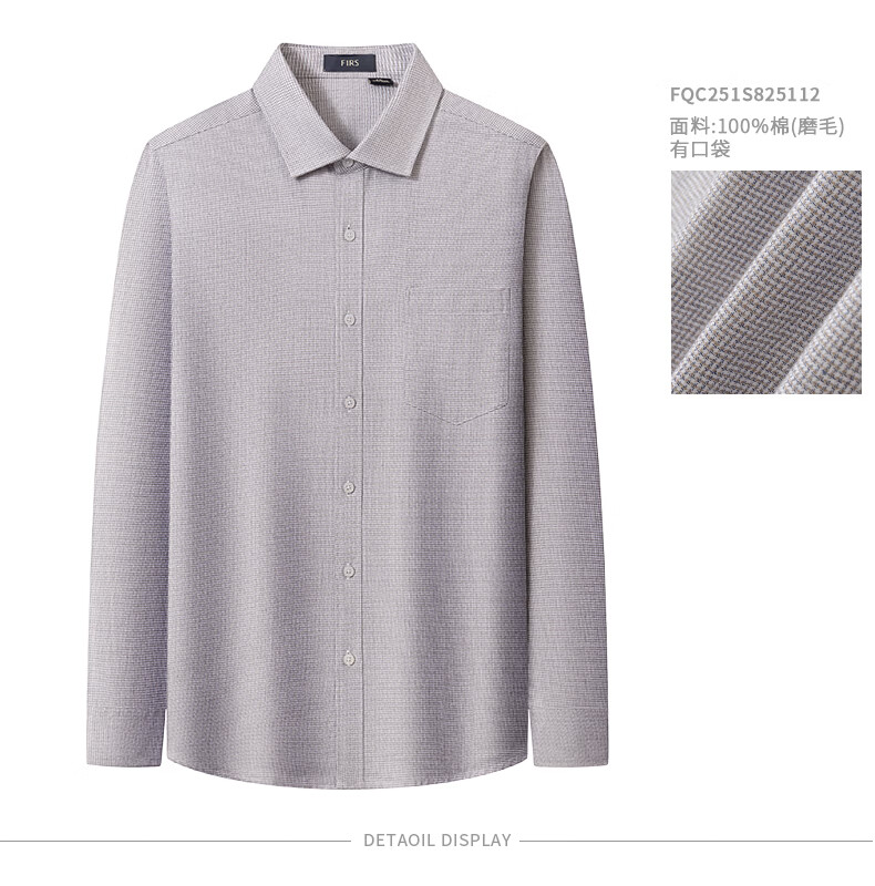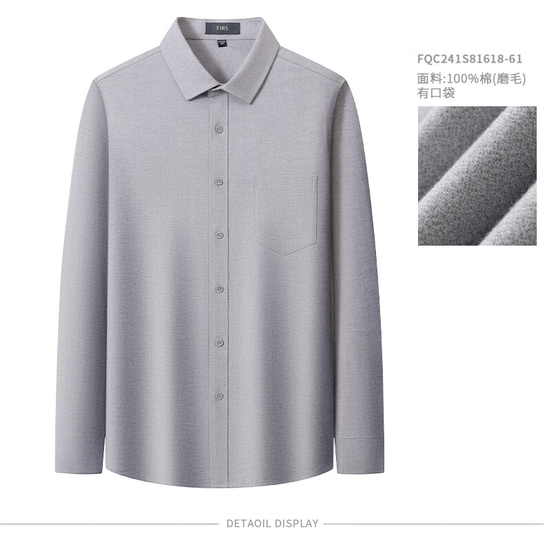 Shanshan (FIRS) upgraded third generation brushed cotton shirt men's long-sleeved new cotton flannel shirt light gray 40