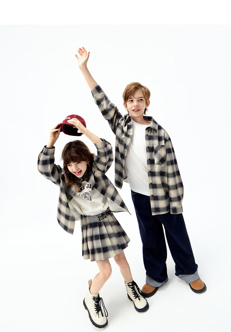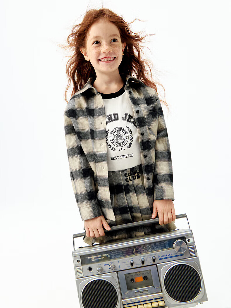 Little MO&Co. parent-child wear little moco children's clothing 25 autumn new style retro plaid shirt long-sleeved tops for boys and girls