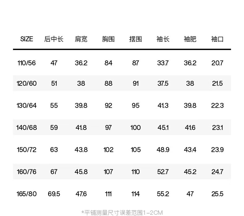 China (cm) 160-165/84-86 165-170 / 88-90 167-172 / 92-96 168-173 / 98-102 170-176 / 106-110
