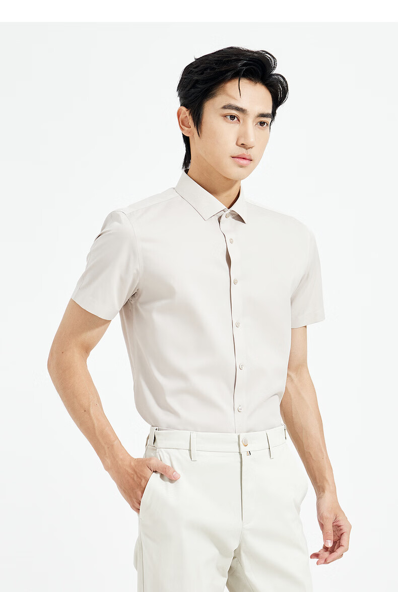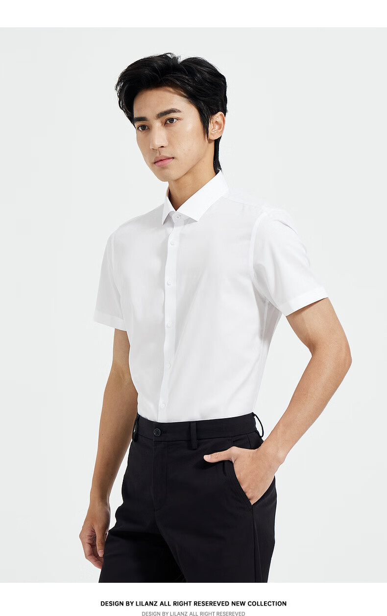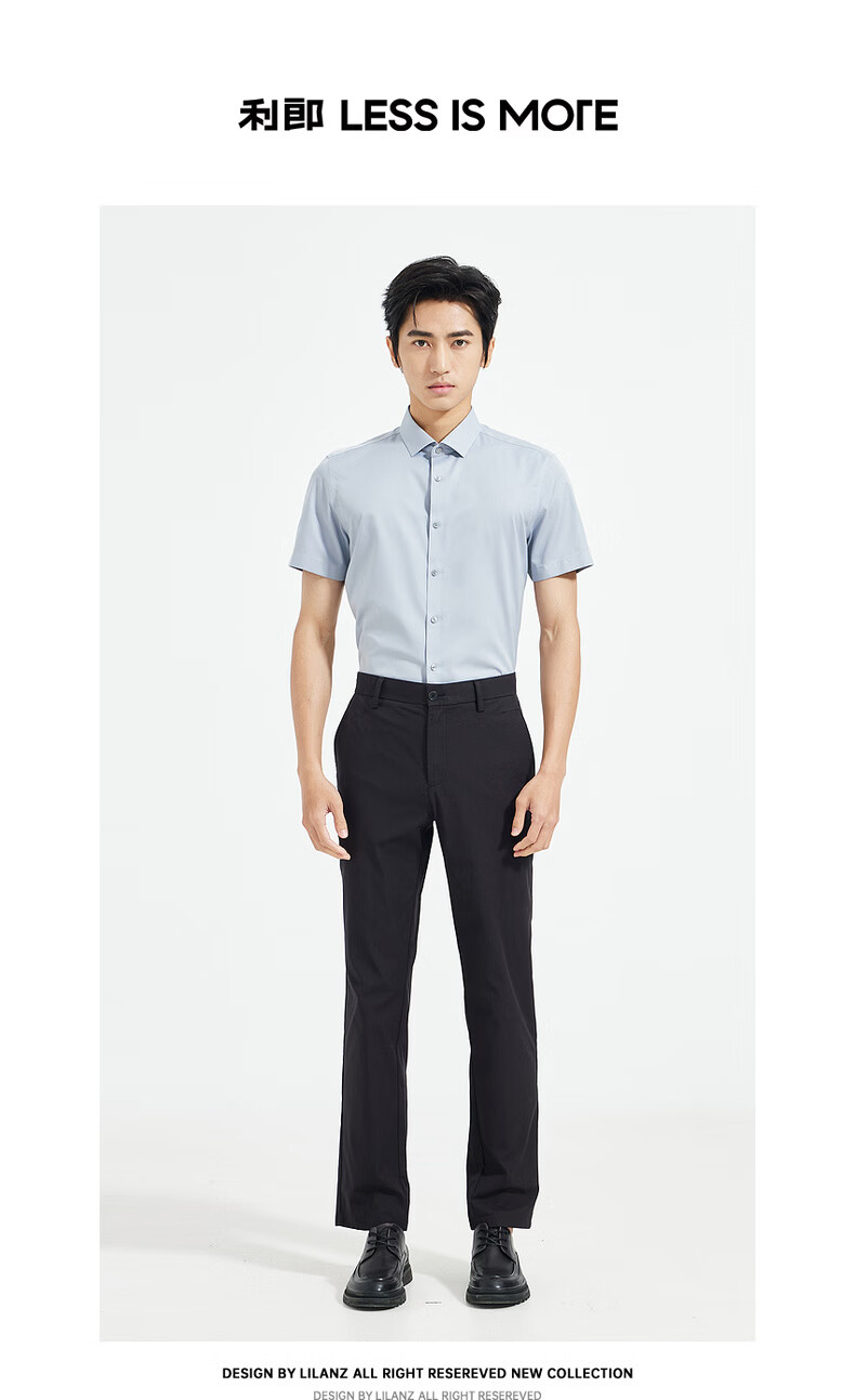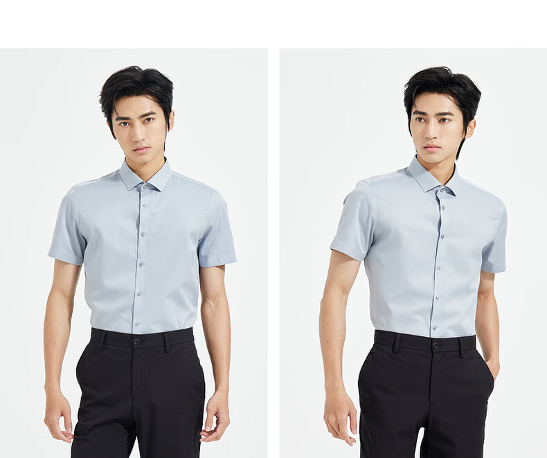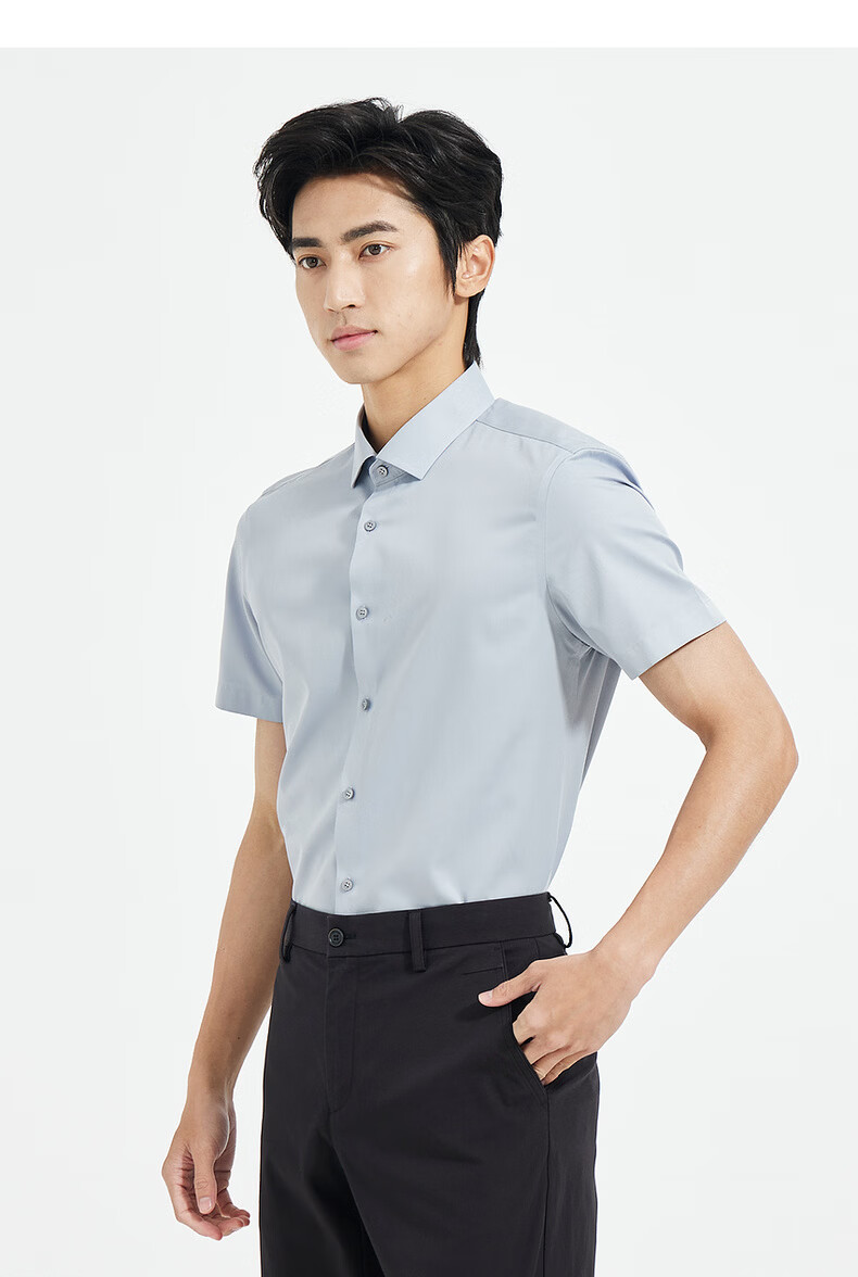 Lilang DP no-iron shirt for men, washable, easy-care, crisp, wear-resistant, short-sleeved shirt, gray blue 42