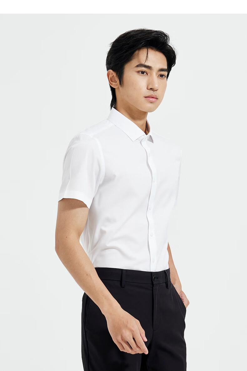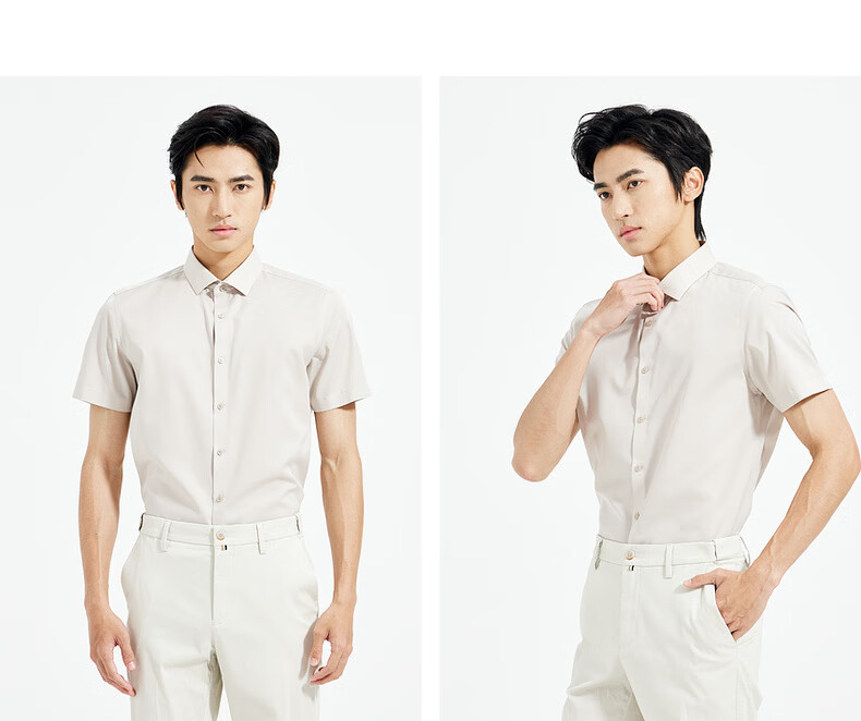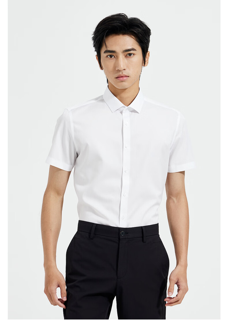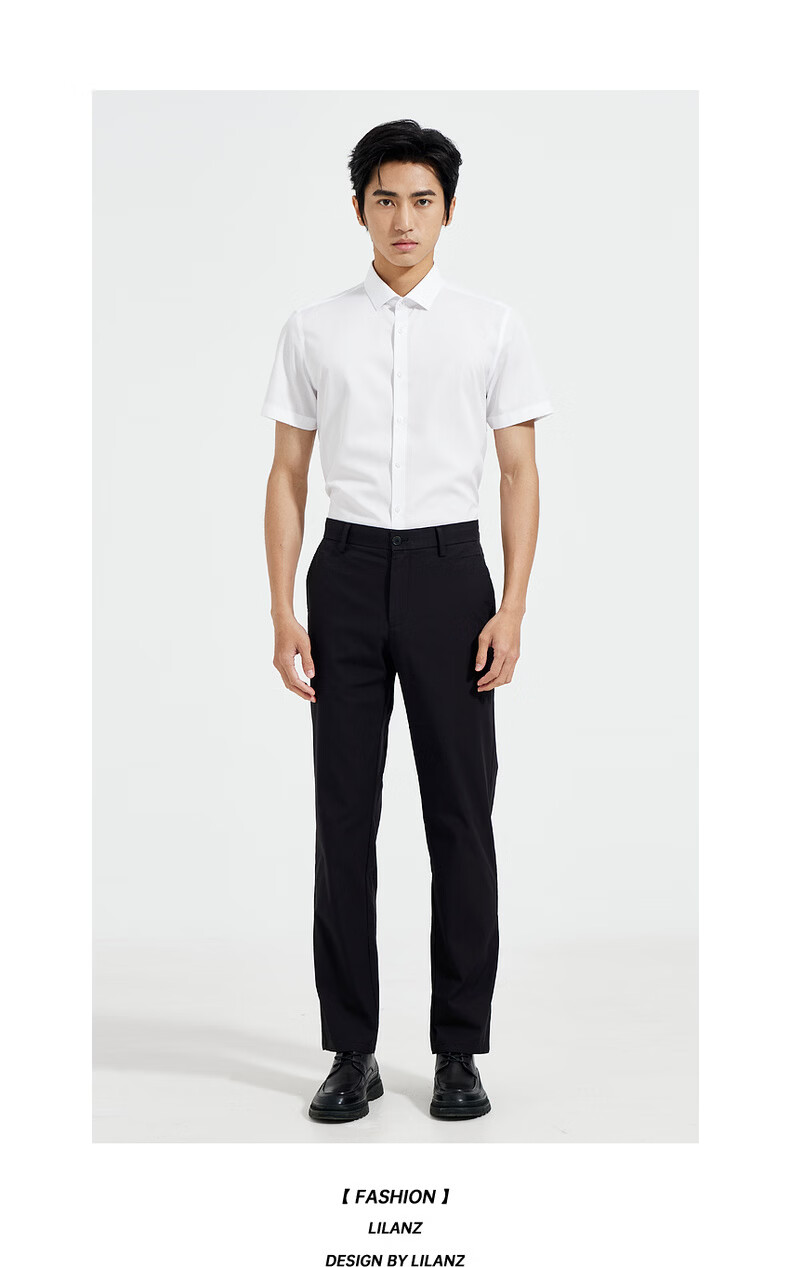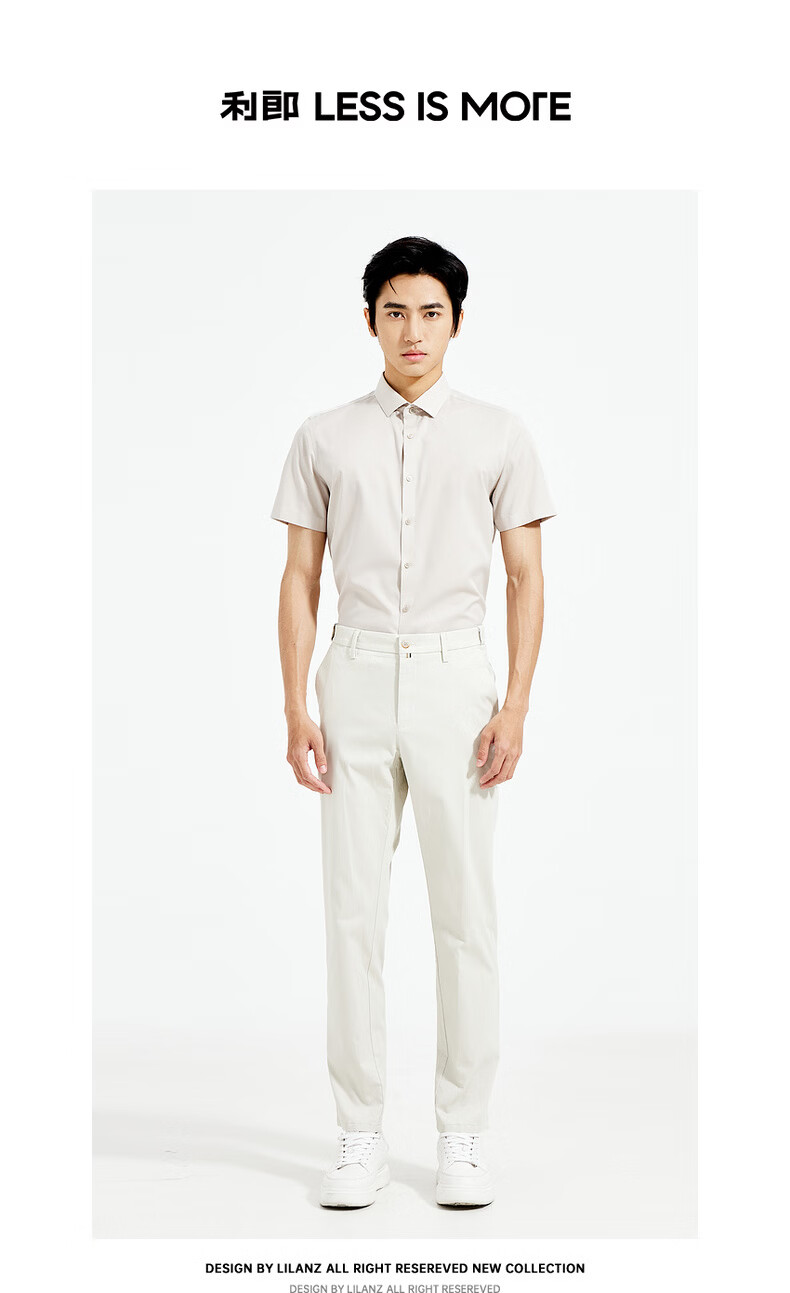 Lilang DP no-iron shirt for men, washable, easy-care, crisp, wear-resistant, short-sleeved shirt, gray blue 42
