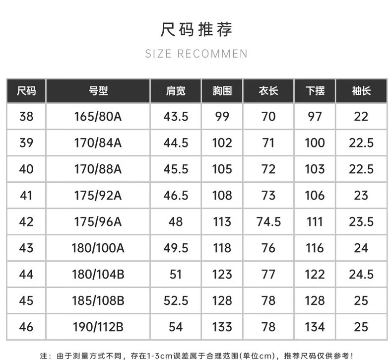 China (cm) 165 / 88-90 170 / 96-98 175 / 108-110 180 / 118-122 185 / 126-130