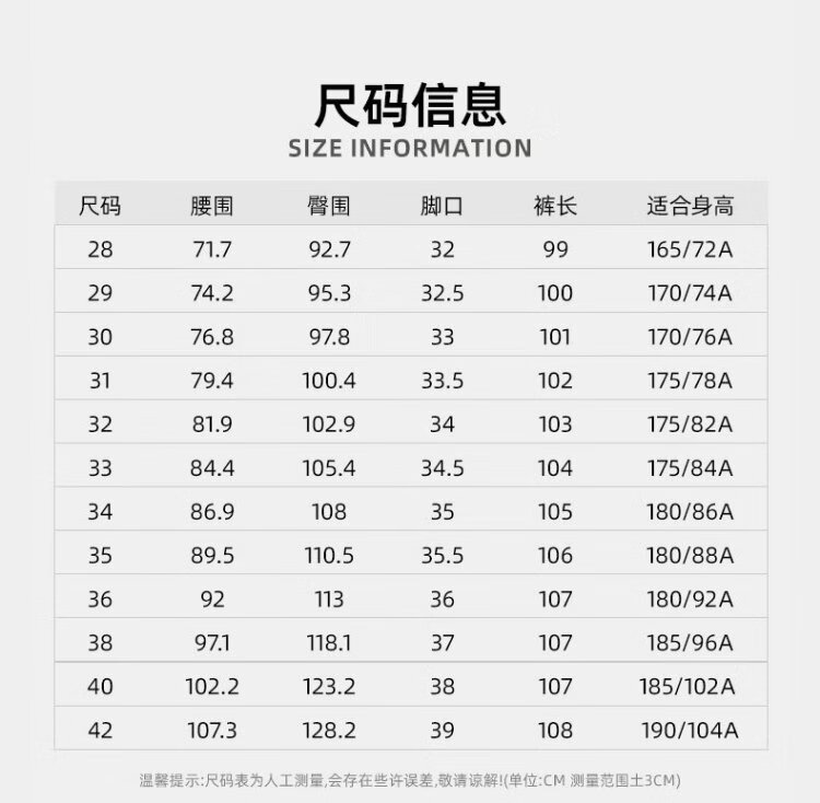 USA(inch) 28-30 30-32 32-34 34-38 38-42