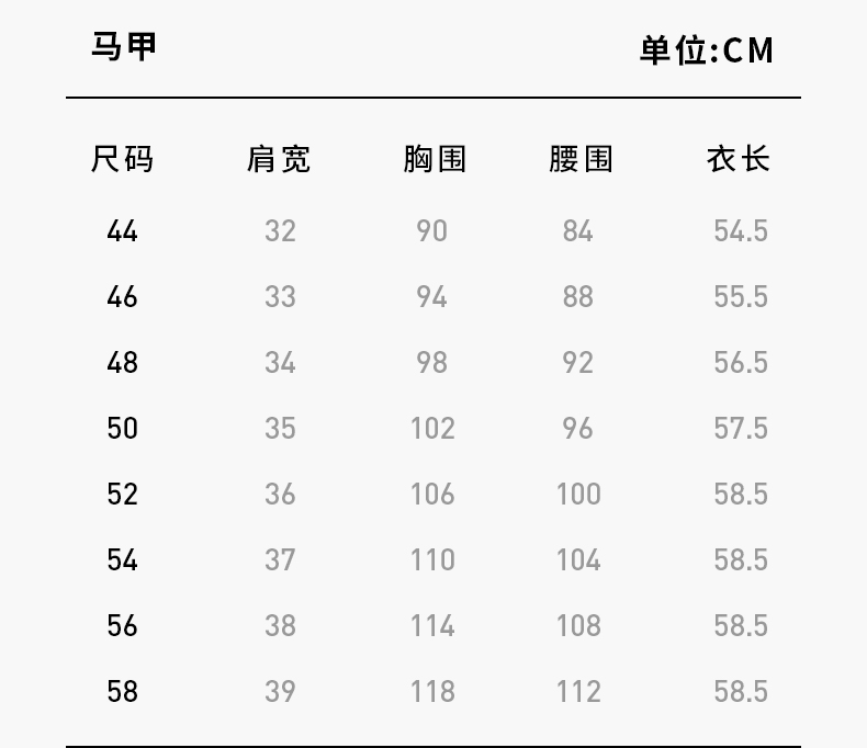 China (cm) 160-165/84-86 165-170 / 88-90 167-172 / 92-96 168-173 / 98-102 170-176 / 106-110