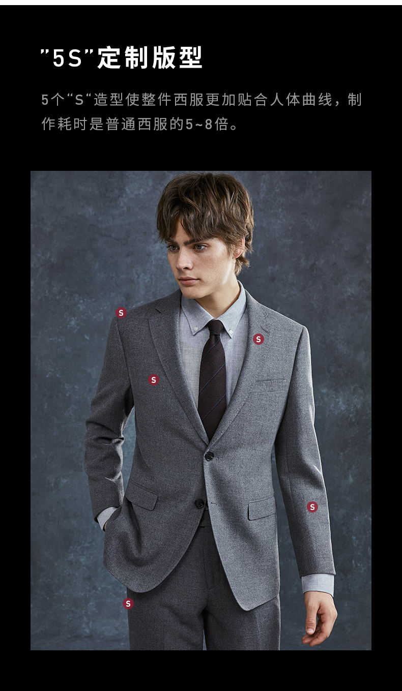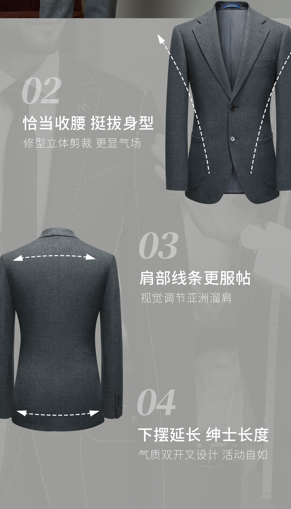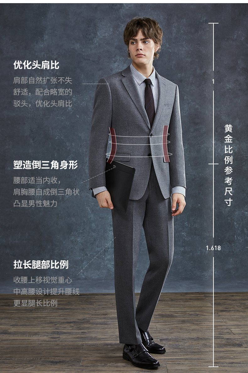 Guillaume de Mons pure wool suit men's business formal suit complete set of men's groom's wedding dress suit thickened gray top + pants MXF076 52