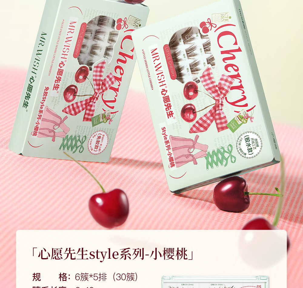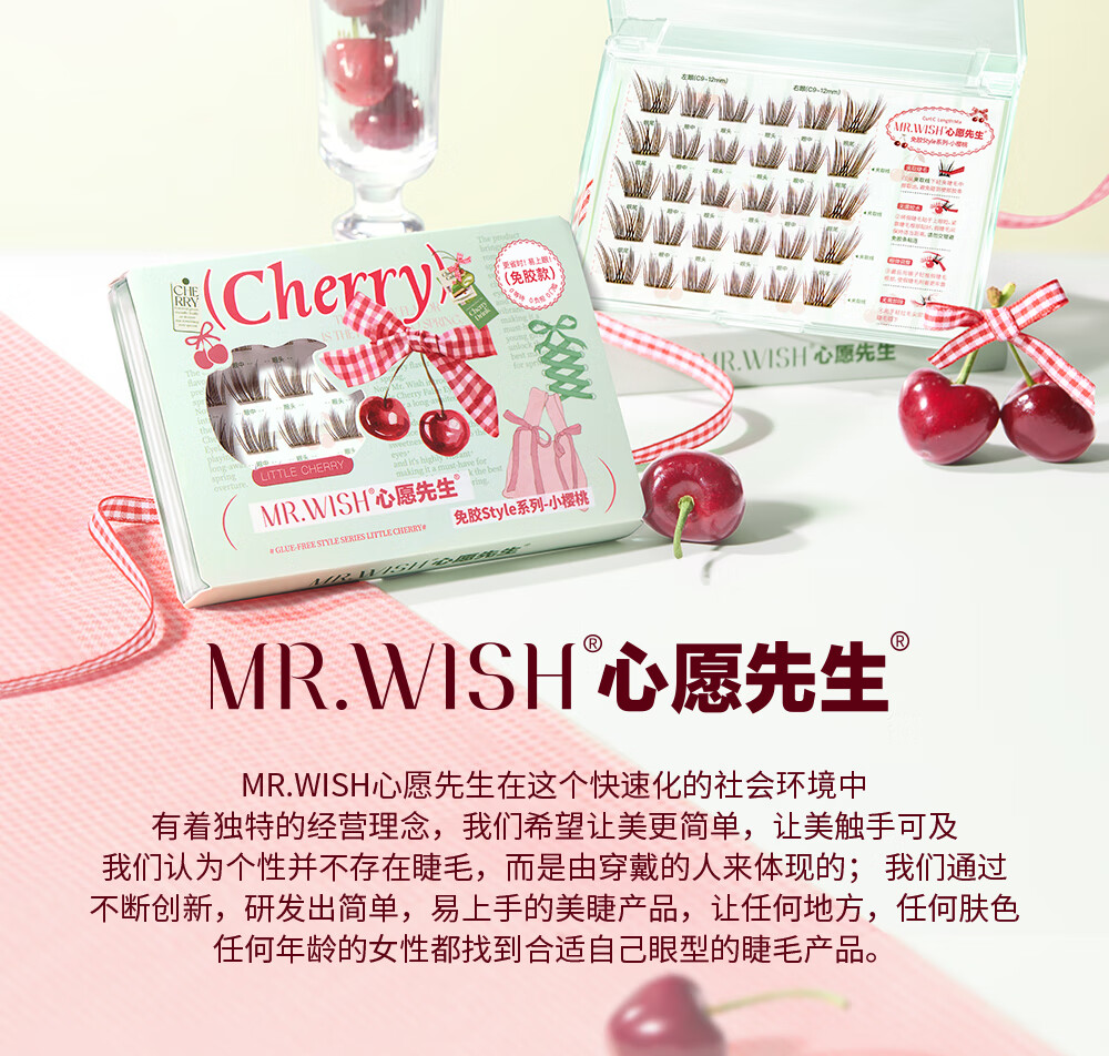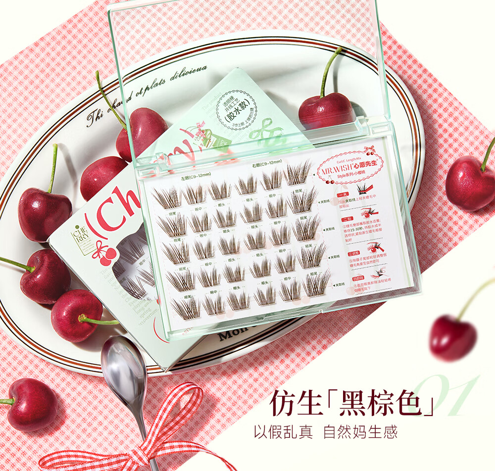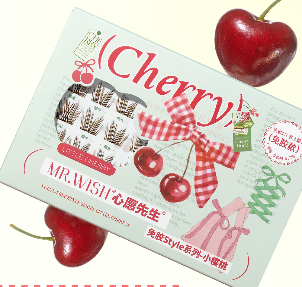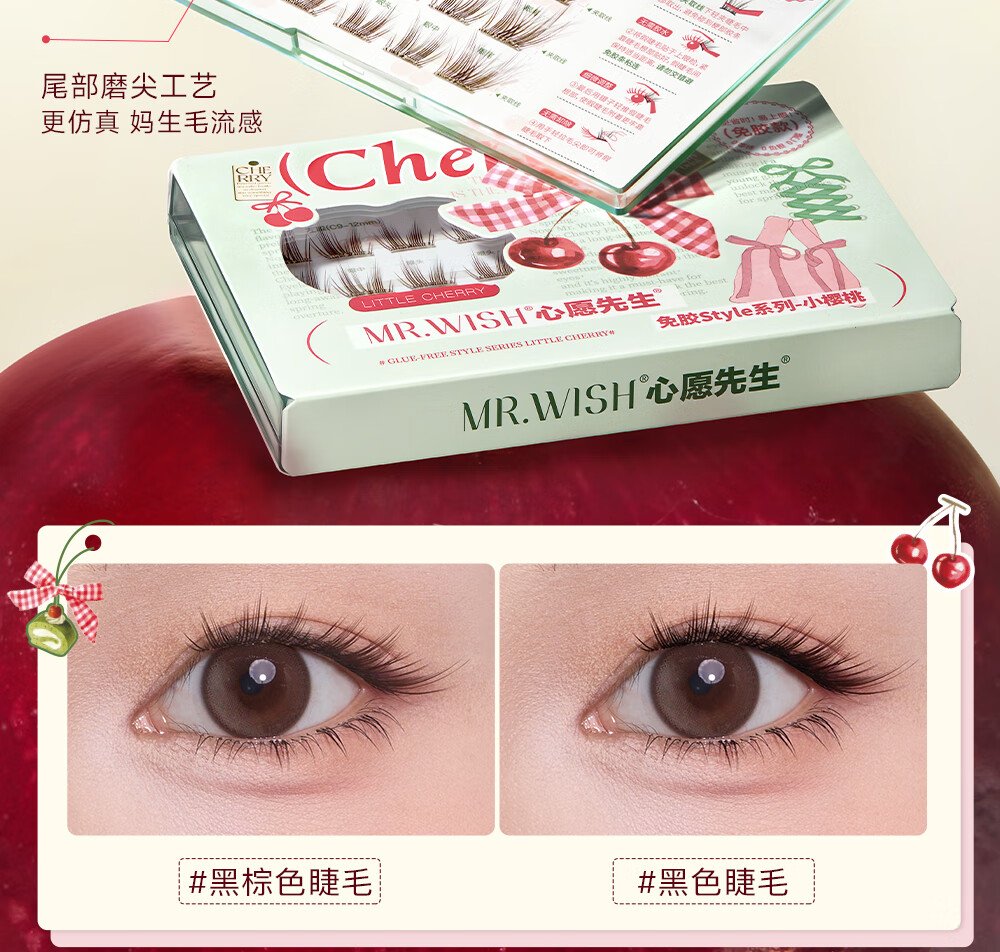 Mr. Wish's glue-free small cherry false eyelashes glue natural simulation diagonal flying up black brown eyelashes fox style glue-free small cherry