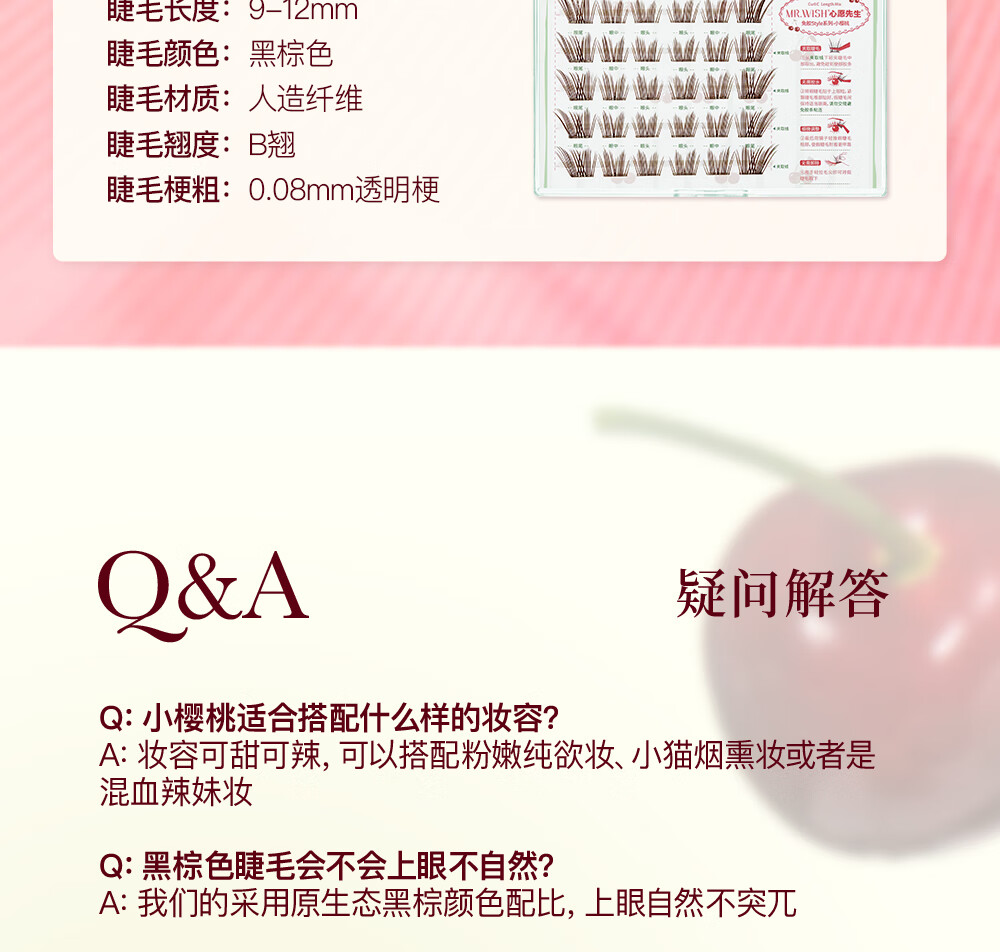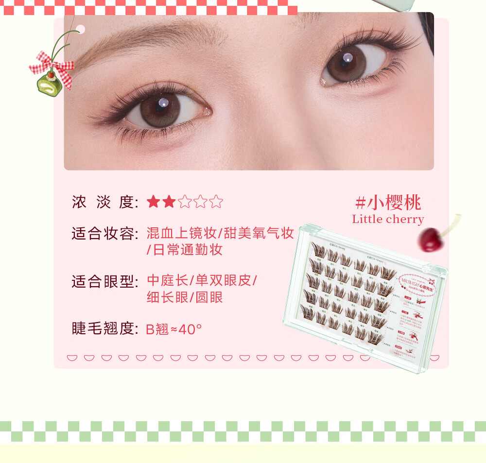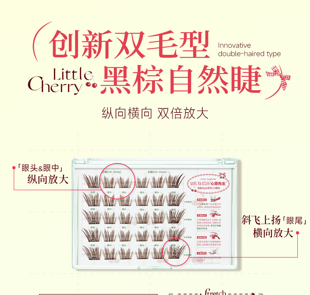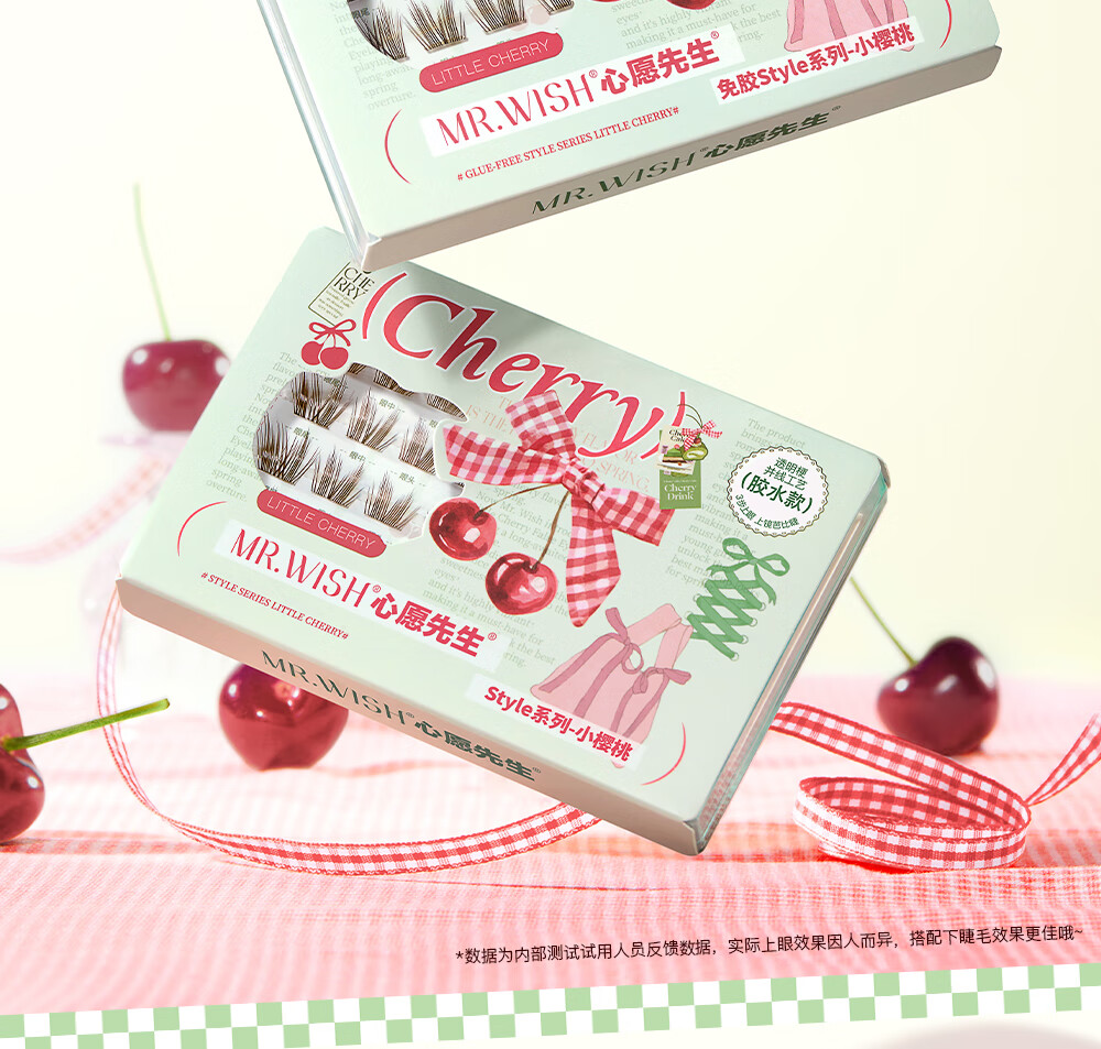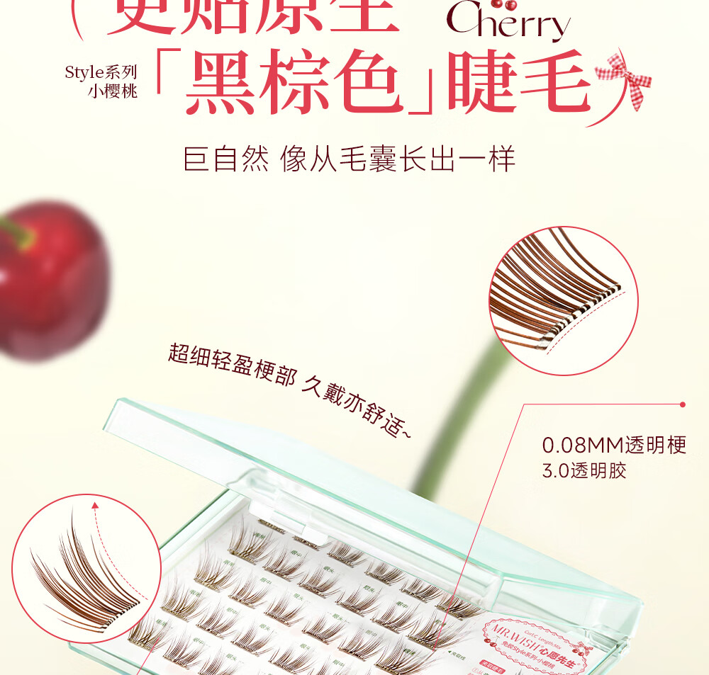 Mr. Wish's glue-free small cherry false eyelashes glue natural simulation diagonal flying up black brown eyelashes fox style glue-free small cherry