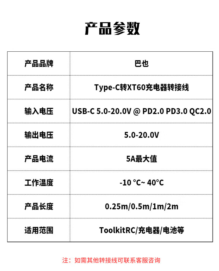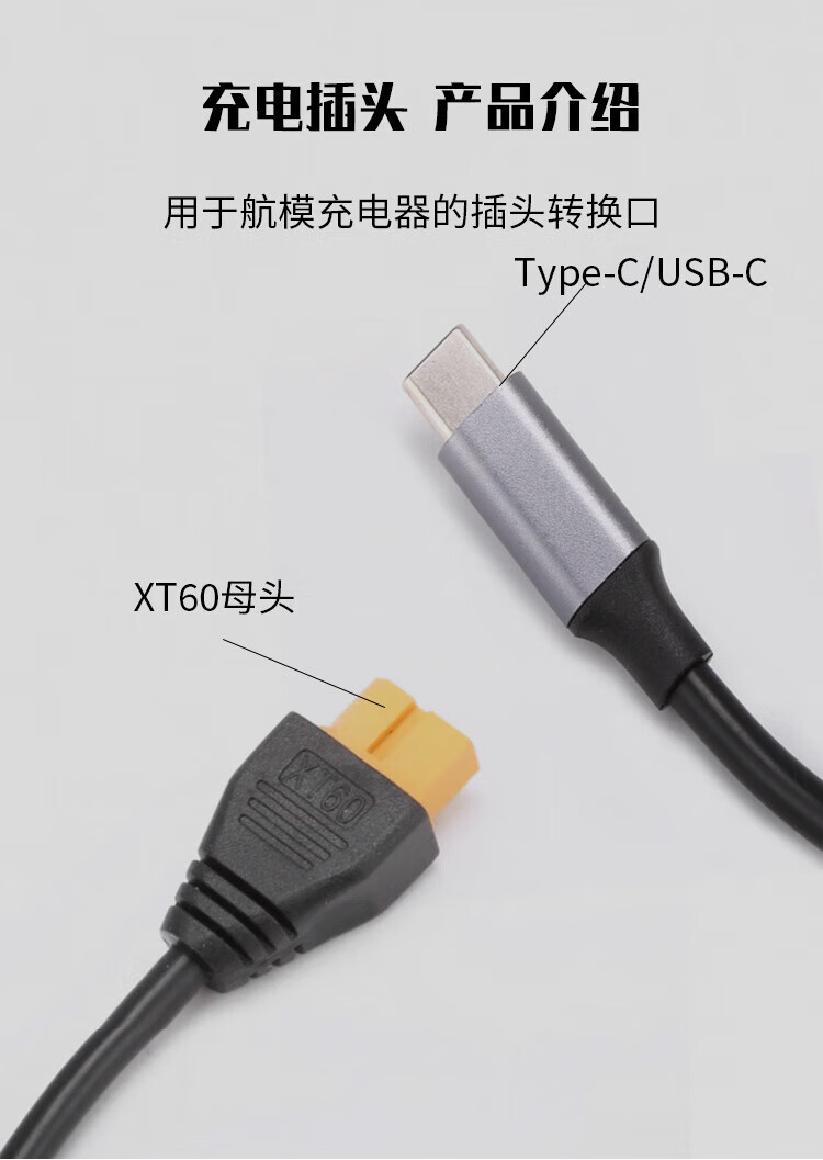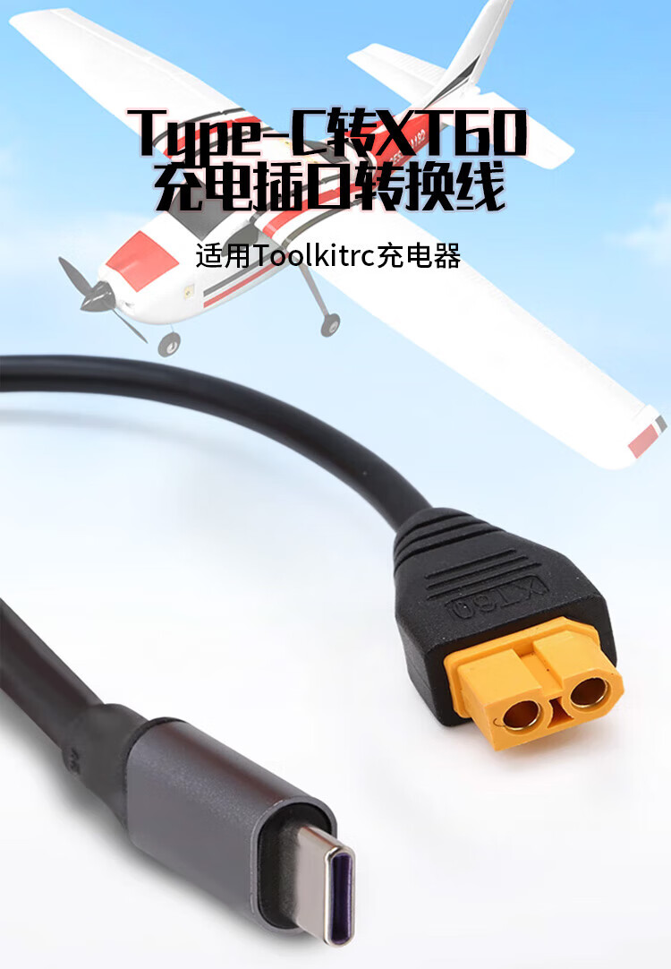 Baye model aircraft power adapter cable Type-C to XT60 female 5A suitable for Toolkitrc SC100 fast charging cable 0.5m BY-TX6050