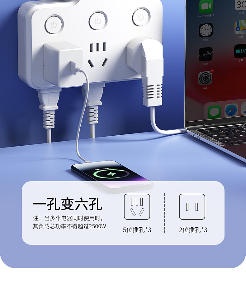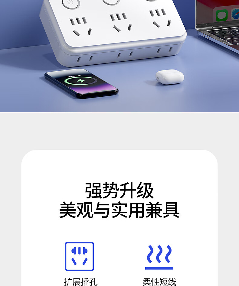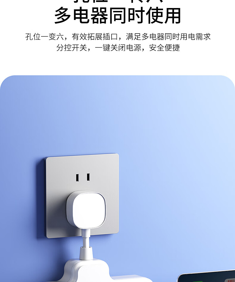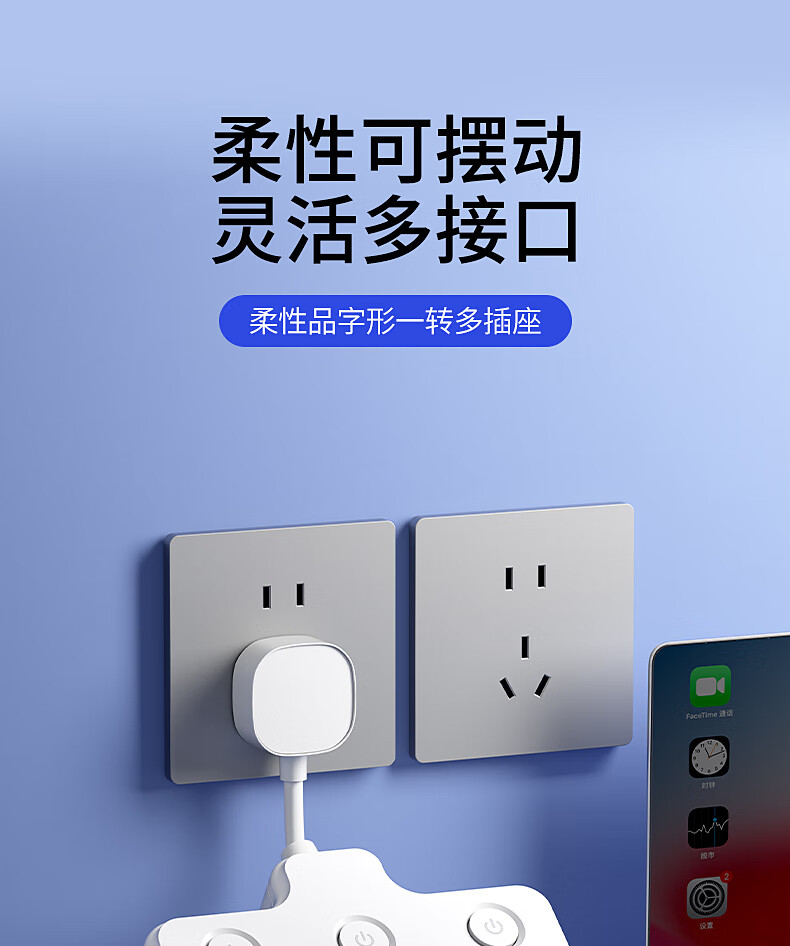 International Electrician Flexible Socket Converter Wireless Plug Strip Porous Household USB Charging Multi-Function One-Turn Multi-Power Terminal Board Flexible Product Shape One-Turn Eight Independent Switch