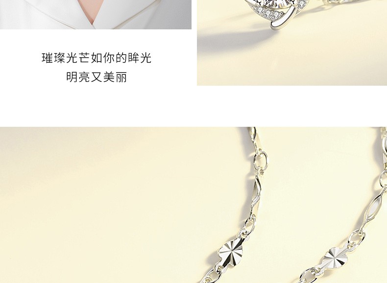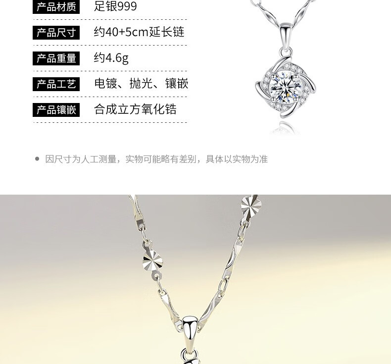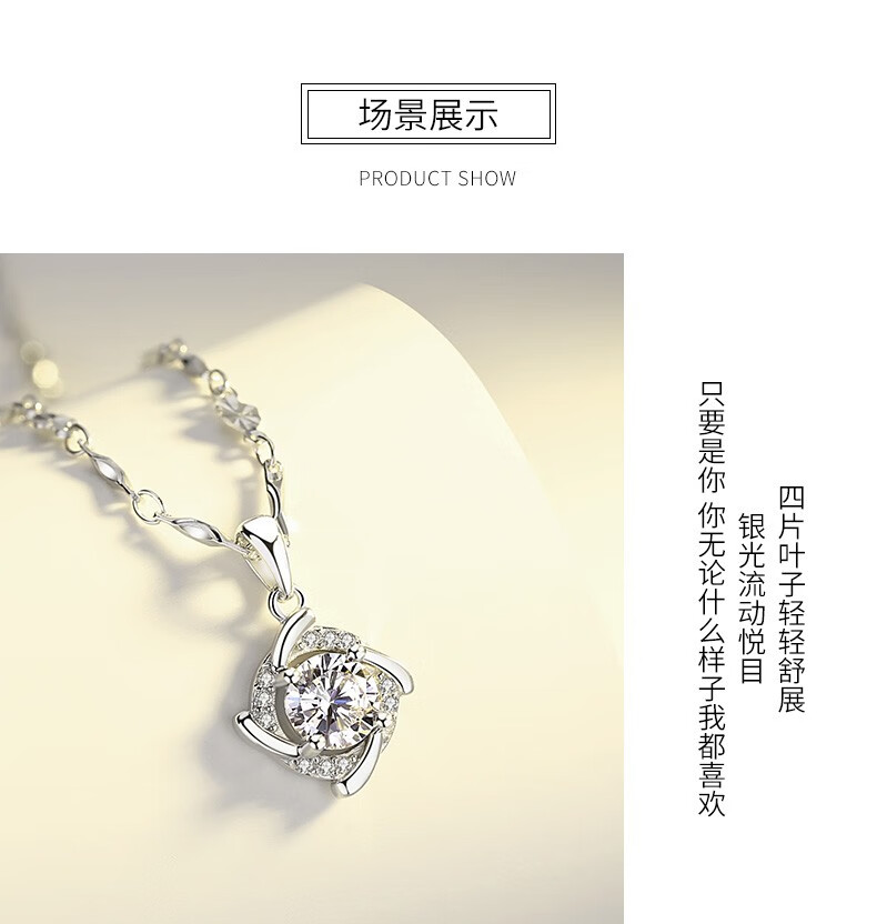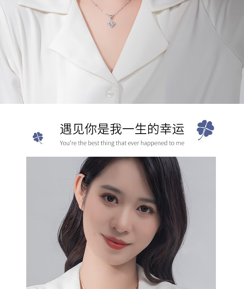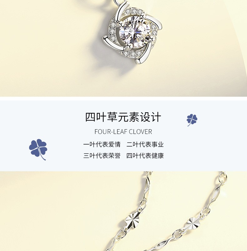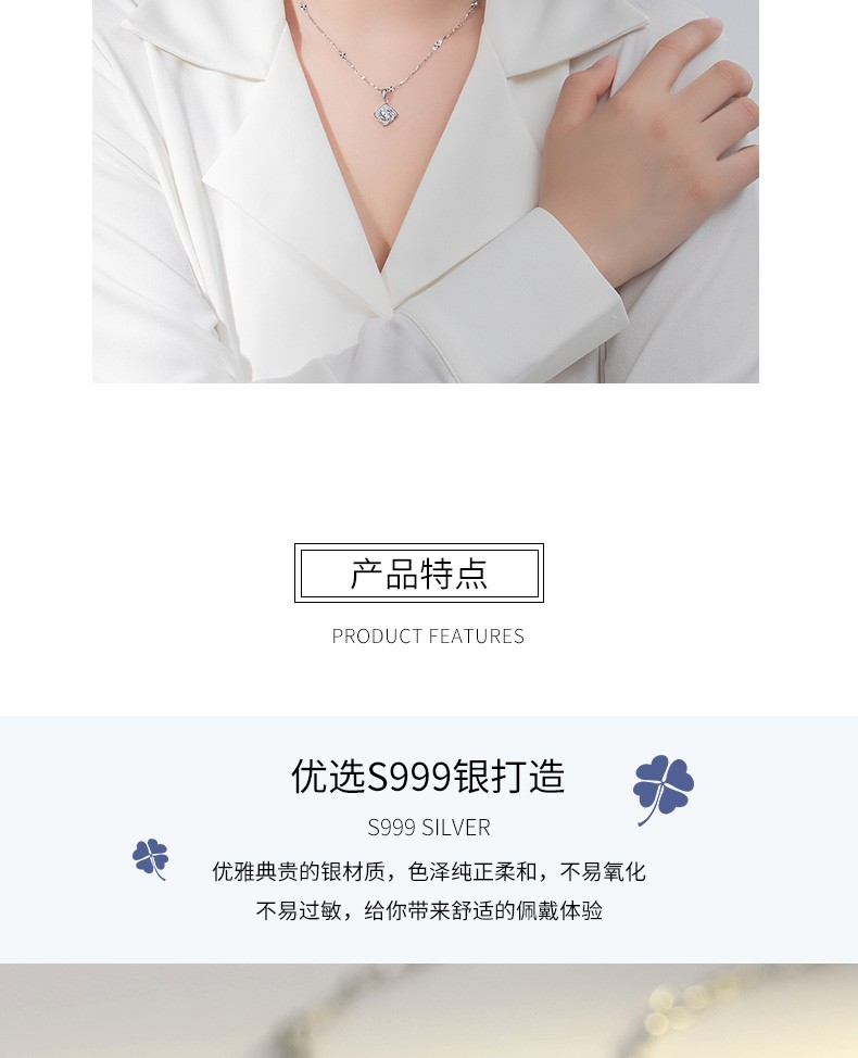 Saint-Jacques 999 Pure Silver Four-leaf Clover Necklace Women's Clavicle Chain Fashion Jewelry Pendant Birthday Gift for Girlfriend Four-leaf Clover Pendant + Ingot Flower Chain