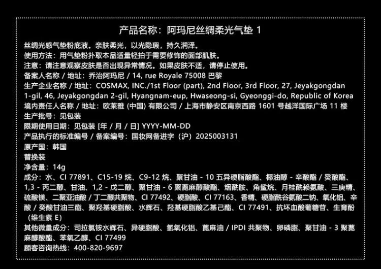Armani Star Style Black Luxury Cushion #1 Moisturizing Delicate Concealer Long-lasting Foundation Birthday Gift Box for Women