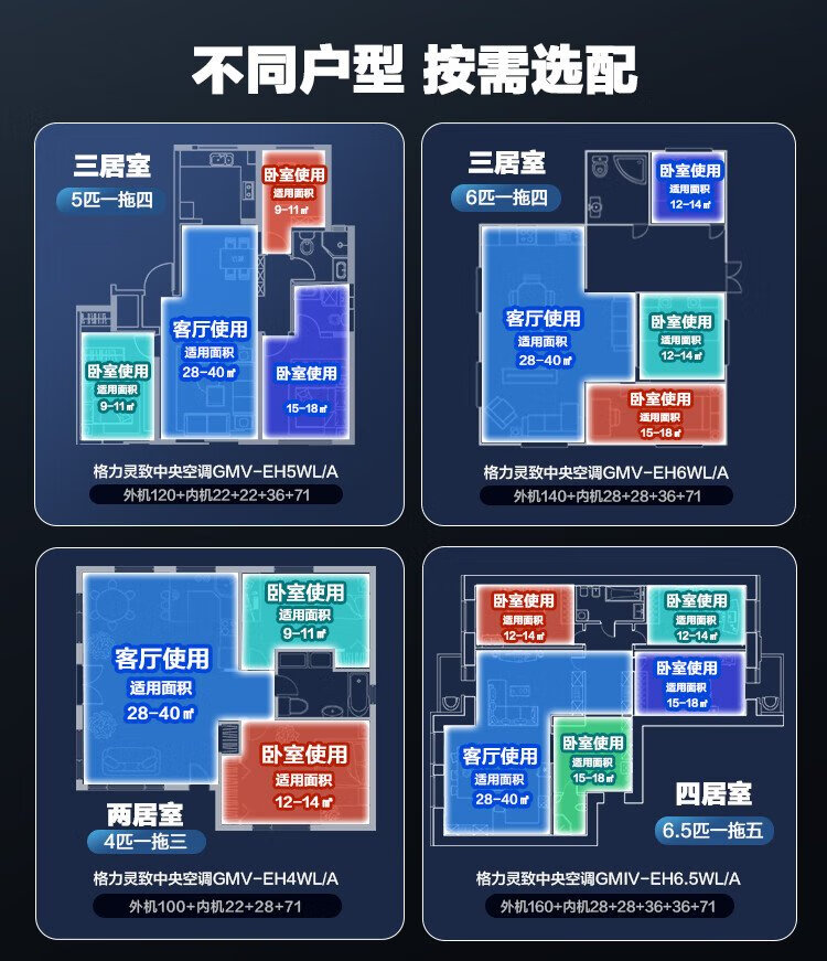 Gree (GREE) central air conditioner one-to-one five-star Yueduo online large 6-pipe Lingzhi 160 GMV-EH6.5WL/A multi-effect silent one-price all-inclusive package Seiko installation state subsidies