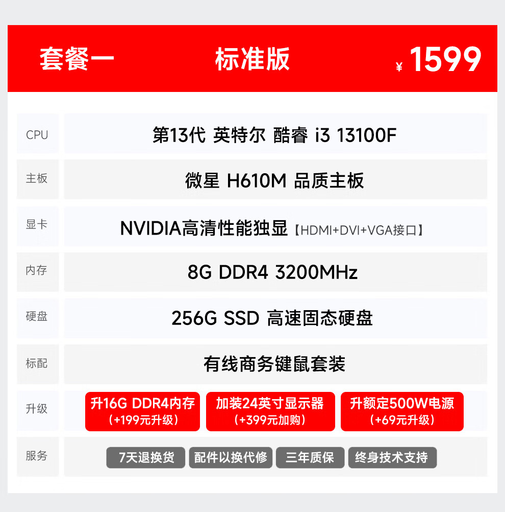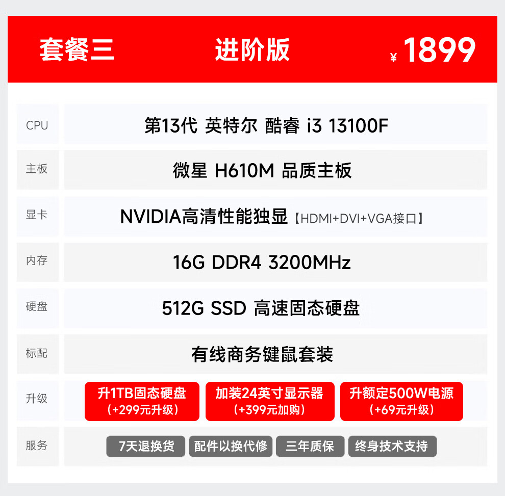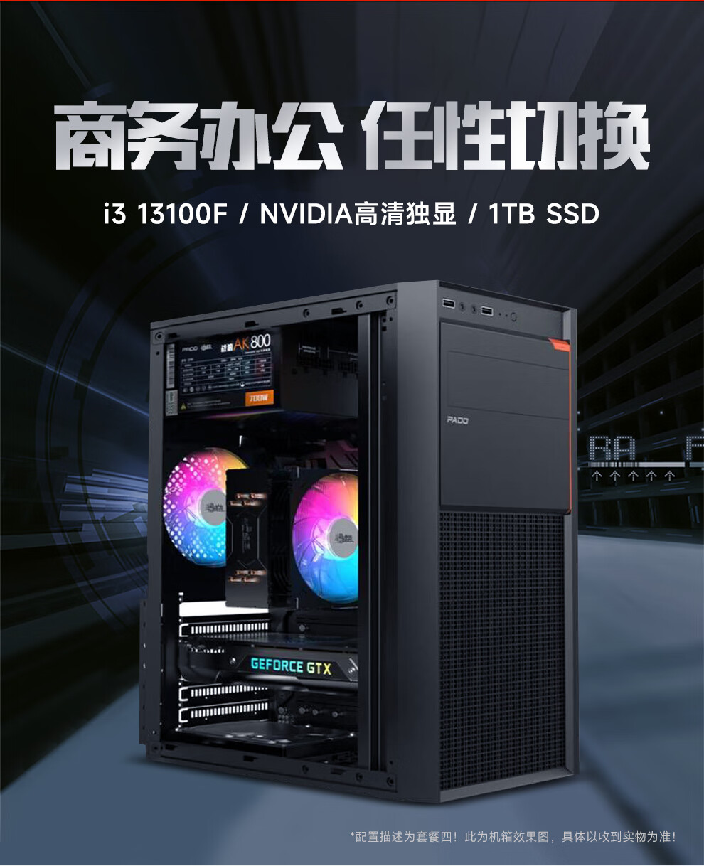 Navigator/MSI i3 13100/16G/512G Enterprise commercial procurement stock trading home office game design desktop computer host DIY assembly computer complete set three 13100F丨16G丨512G丨HD independent display