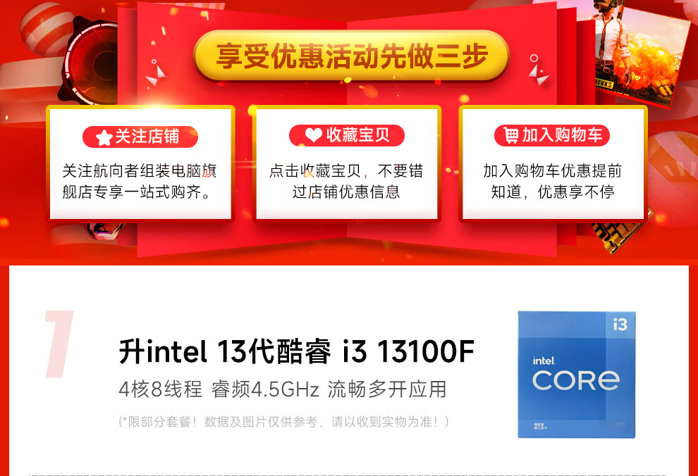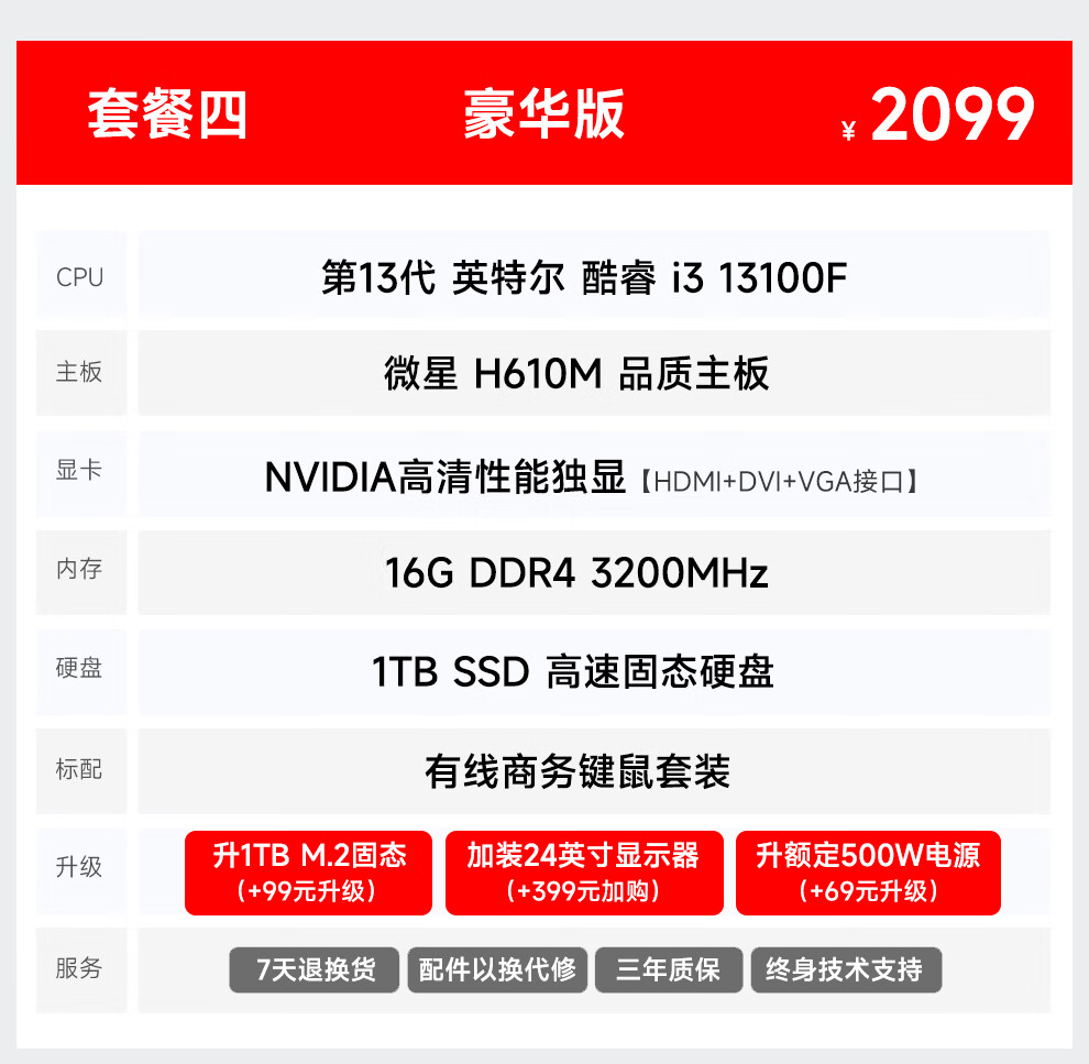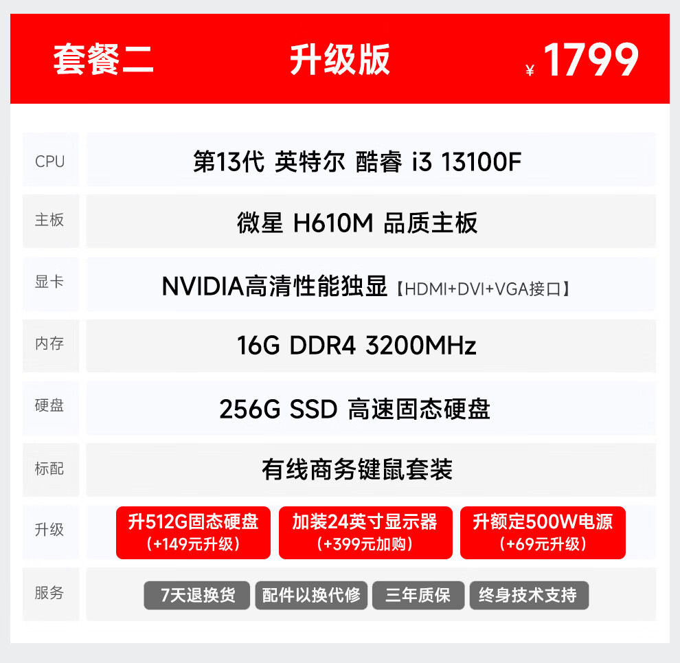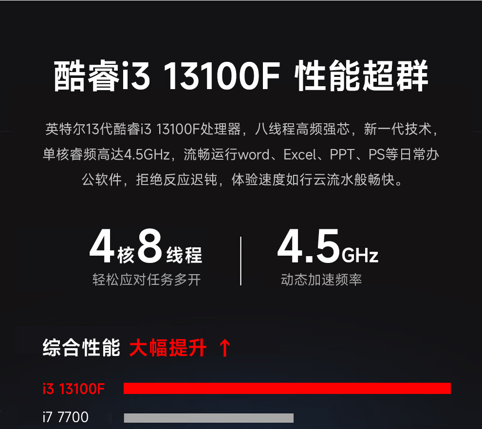 Navigator/MSI i3 13100/16G/512G Enterprise commercial procurement stock trading home office game design desktop computer host DIY assembly computer complete set three 13100F丨16G丨512G丨HD independent display