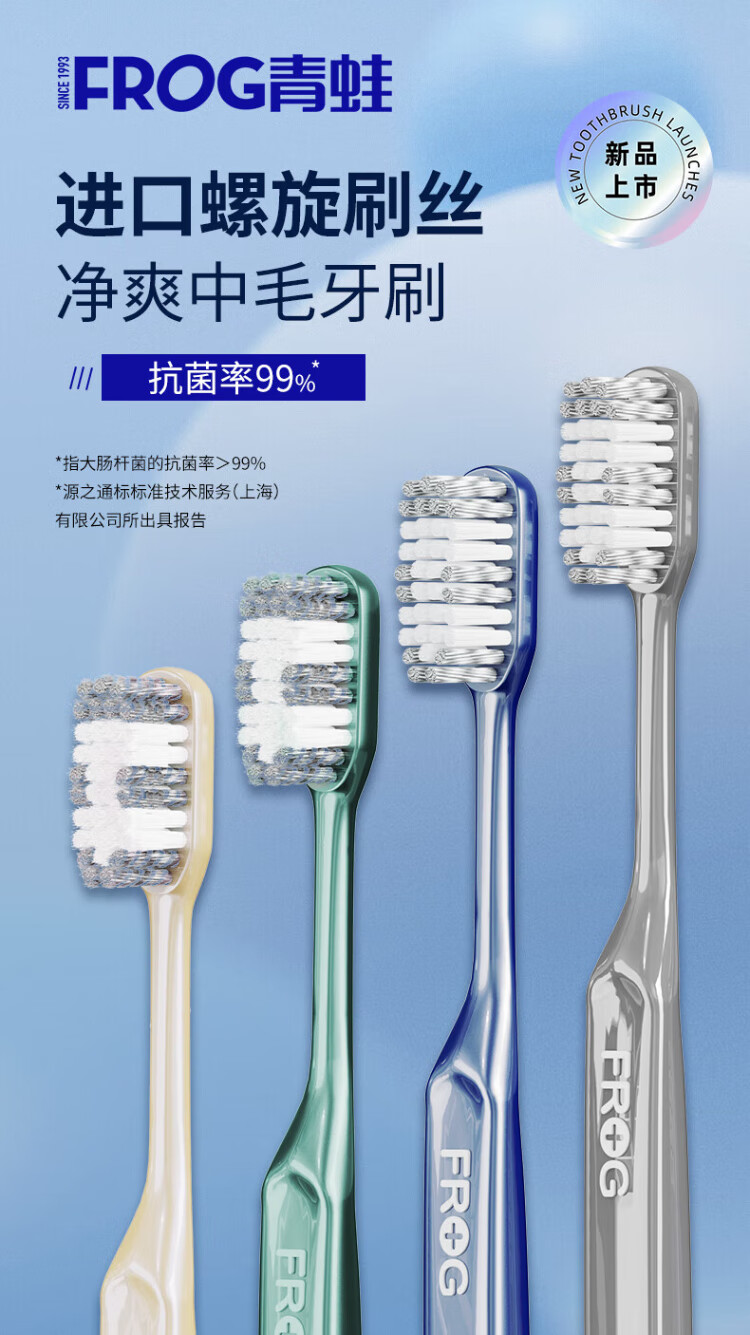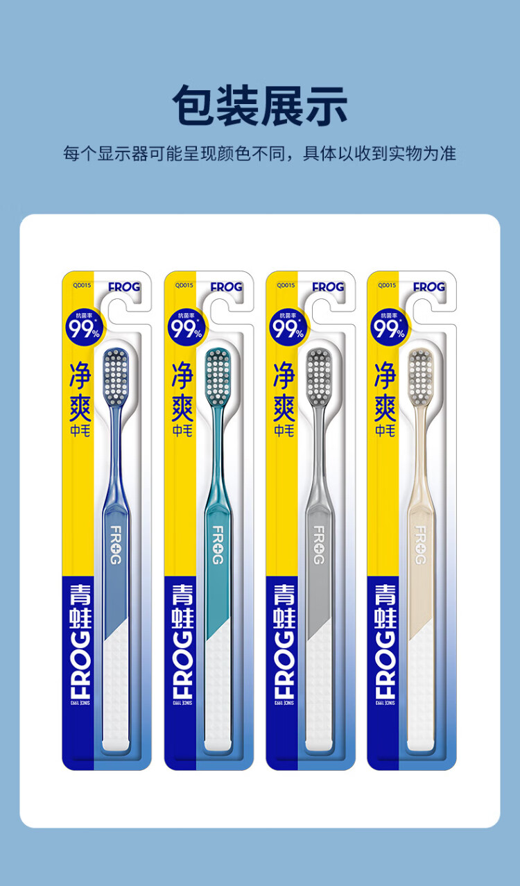 Frog Adult Toothbrush Set 2 Pack Antibacterial Medium Hard and Soft Bristle Toothbrush for Men and Women (Random Color)