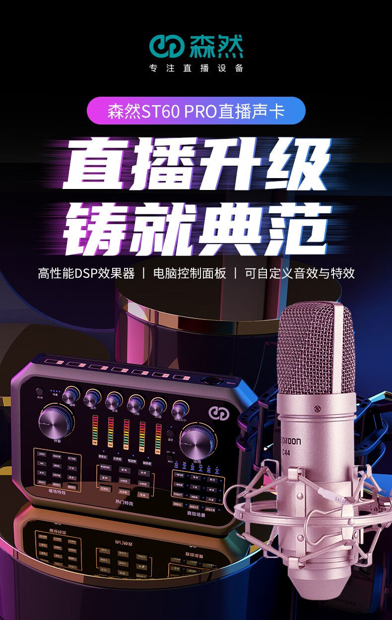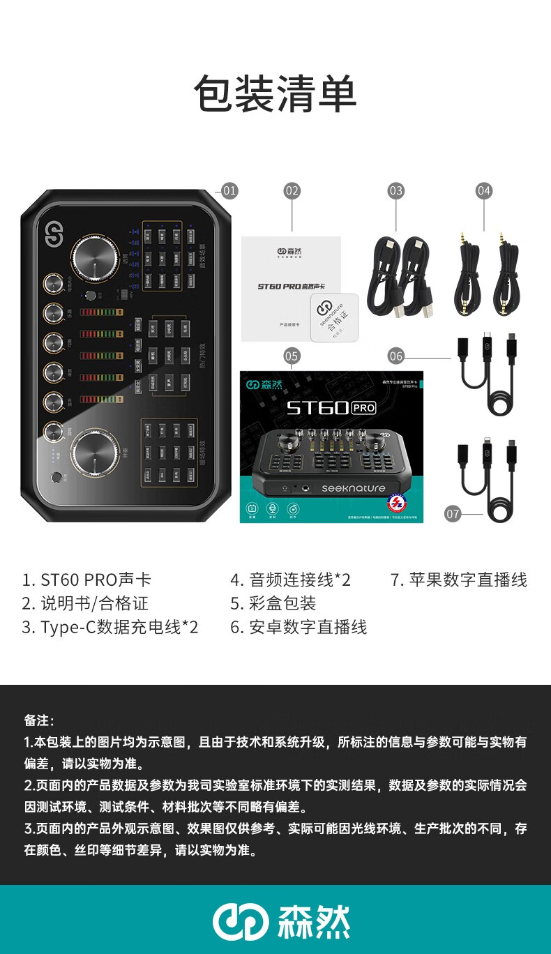 Seeknature Sound Card Broadcast Bar Live Broadcast Equipment Sound Card Set Mobile Live Broadcast Wireless Microphone Karaoke Live Online Class Seeknature ST60pro Silencing Sound Card + C44 Large Diaphragm Condenser Microphone *