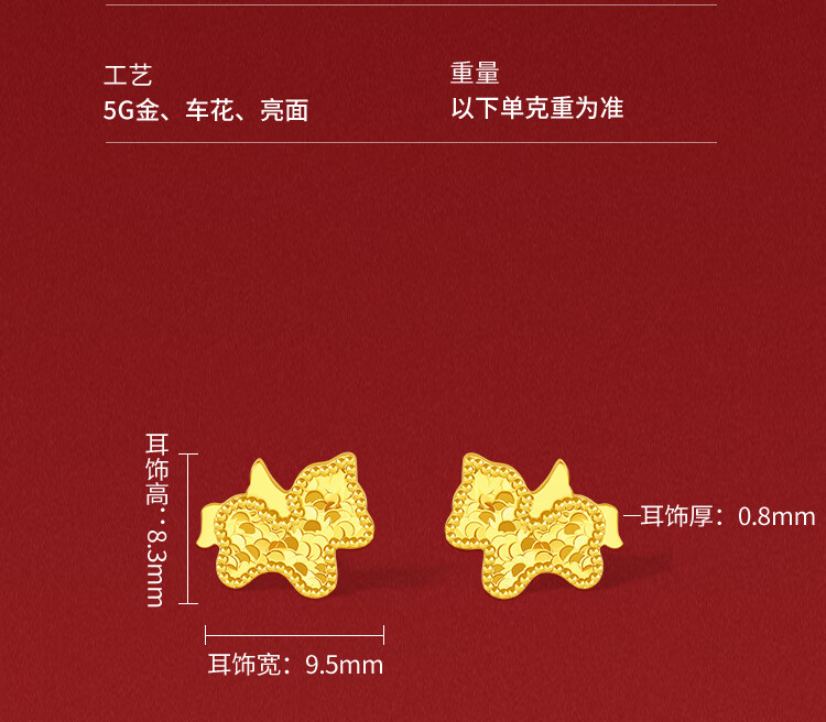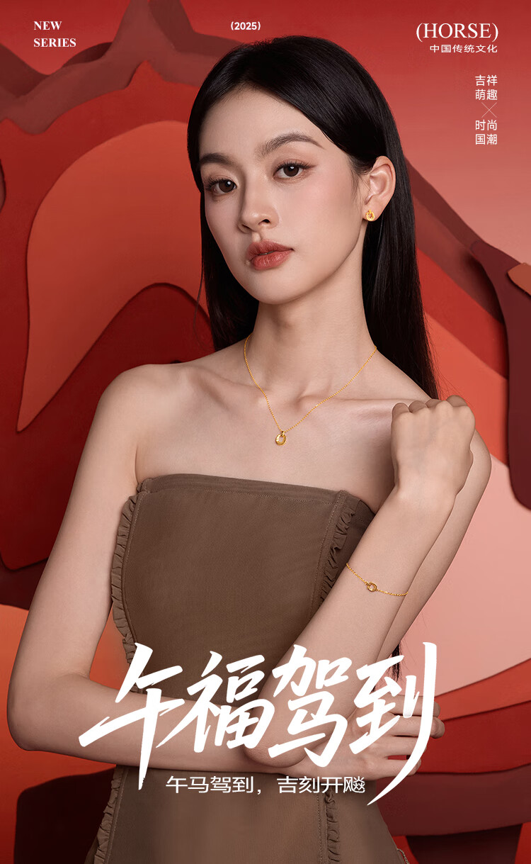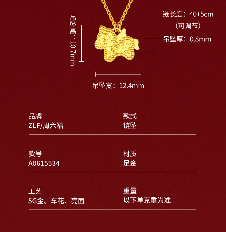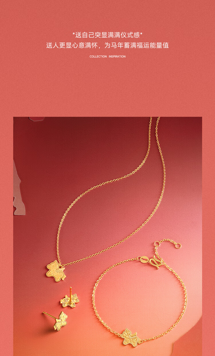 Saturday Fulingma Gold Necklace Pendant Earrings Pure Gold Zodiac Horse Approximately 2.41g Bracelet 16+3cm New Year's Birthday Gift