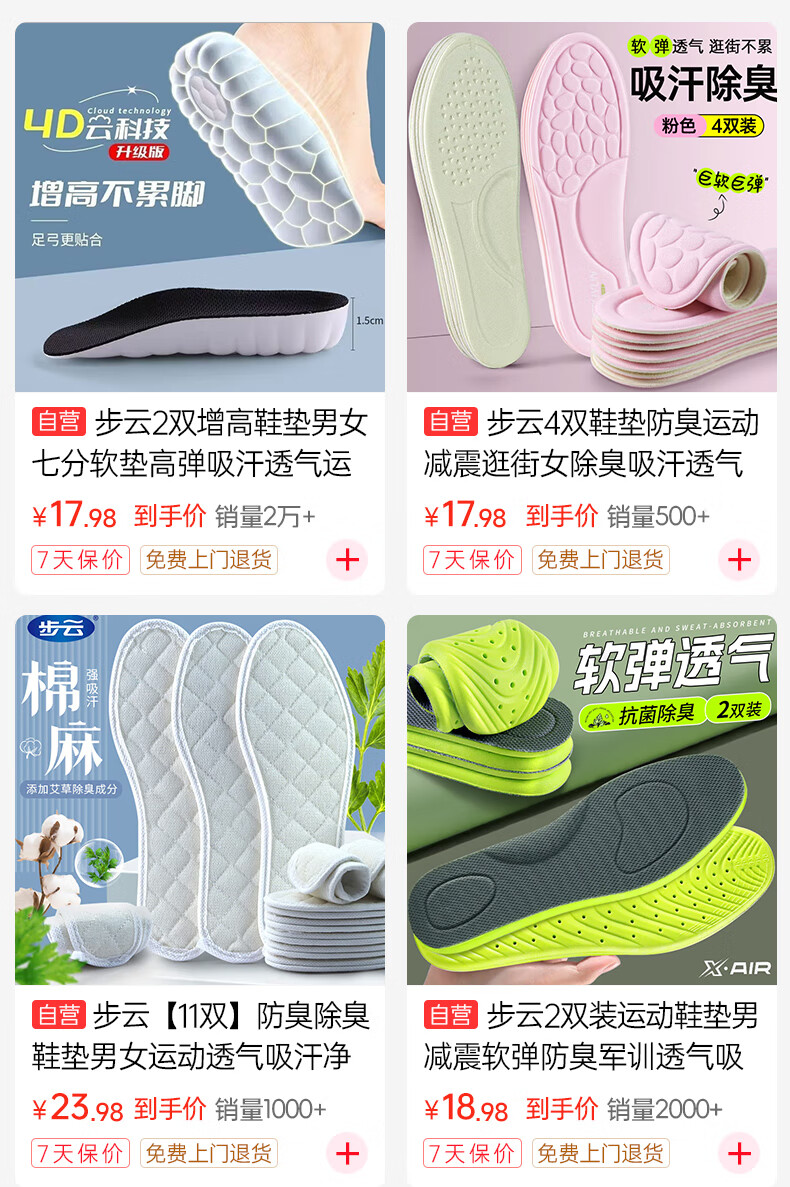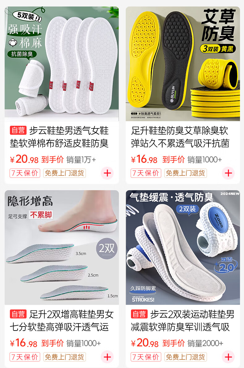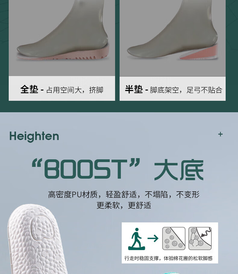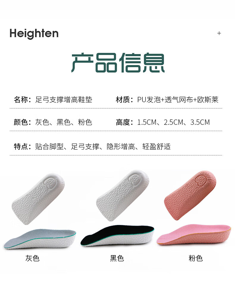 Zusheng 2 pairs of heightening insoles for men and women, three-point soft pads, high elasticity, sweat-absorbing, breathable, sports invisible heightening pads and half pads