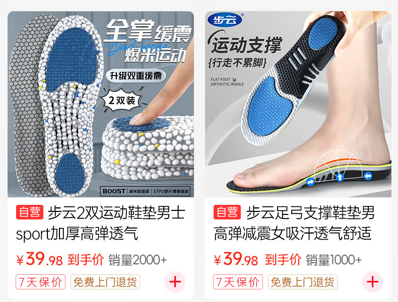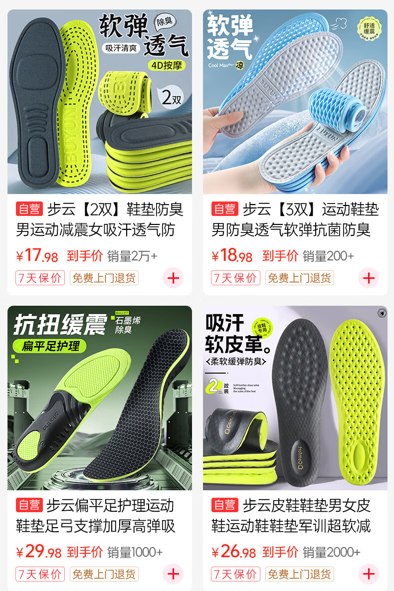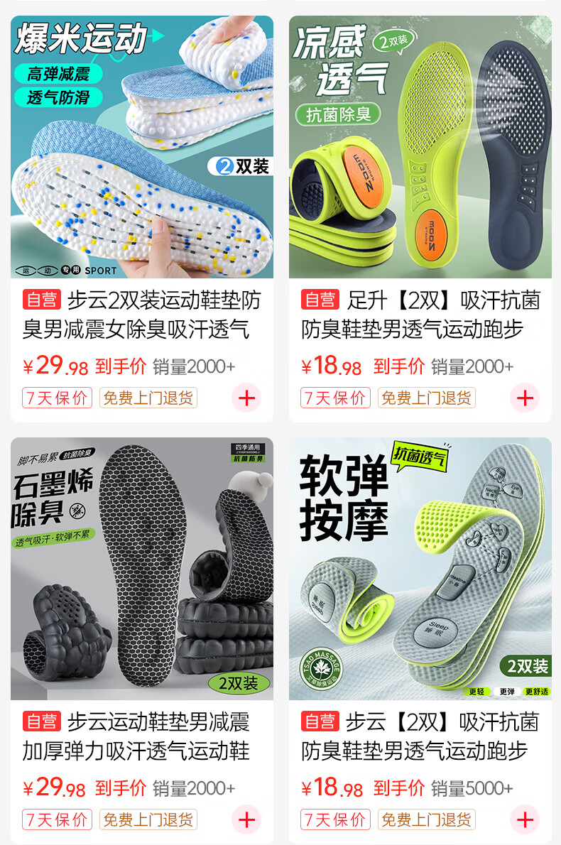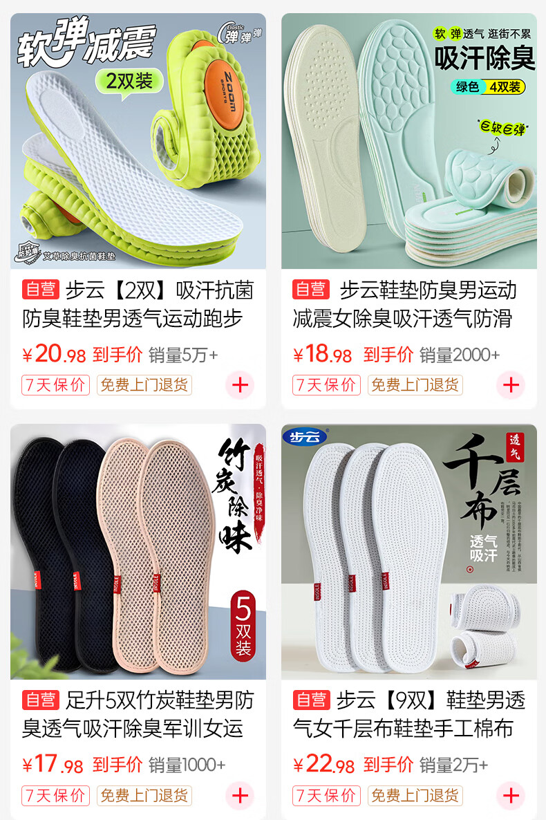 Zusheng 2 pairs of heightening insoles for men and women, three-point soft pads, high elasticity, sweat-absorbing, breathable, sports invisible heightening pads and half pads