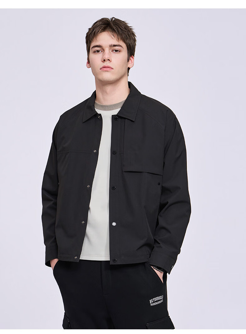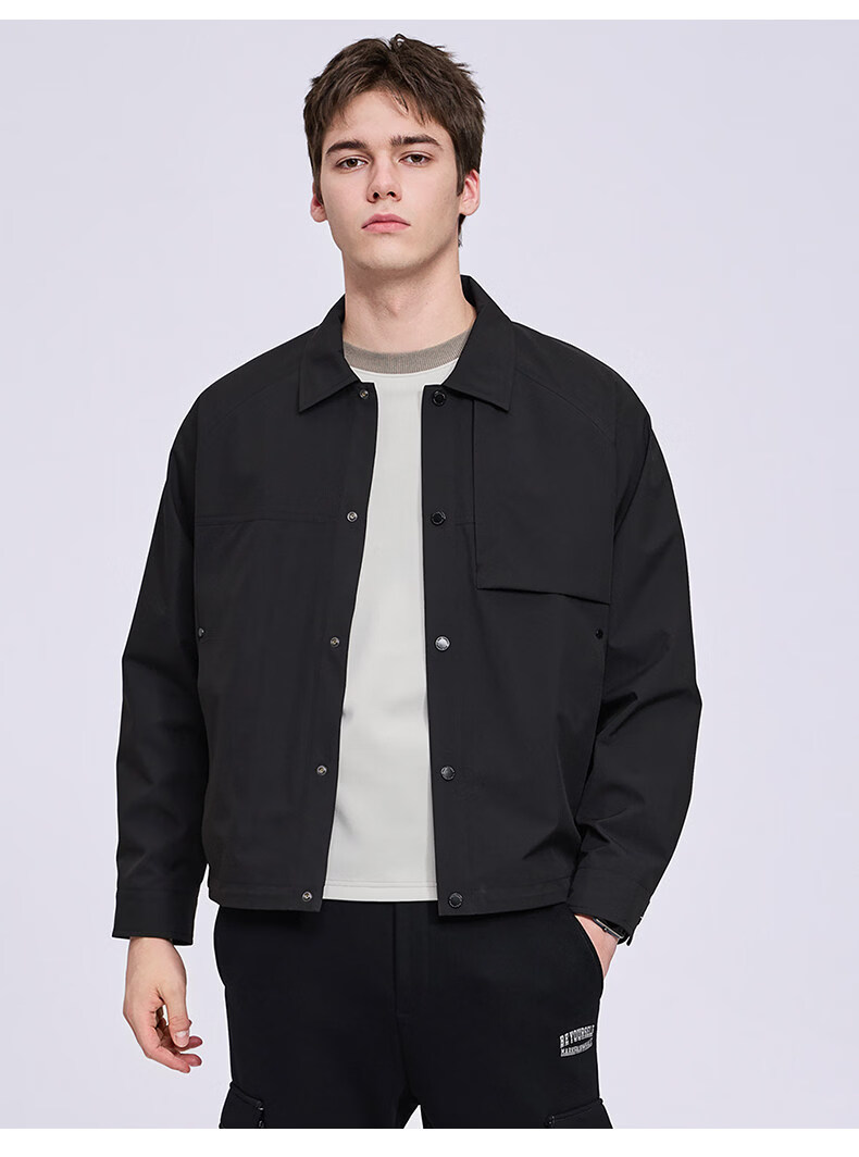 Mark Huafei Easy Care Lapel Jacket Men's 2026 Spring New Trendy Black Casual Commuting Windproof Jacket