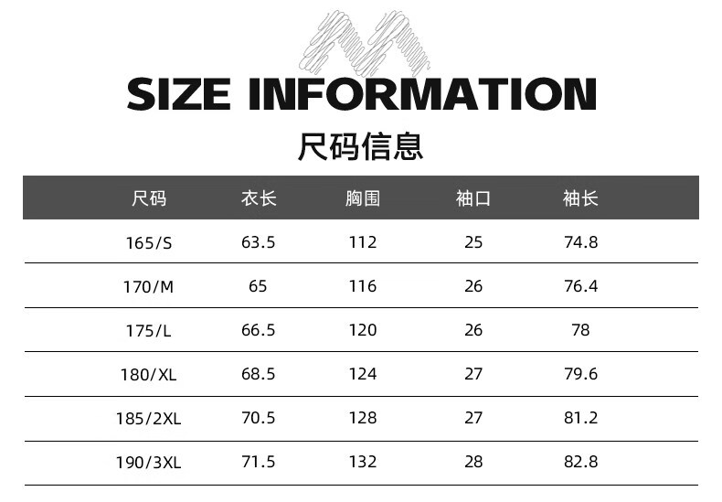 China (cm) 165 / 88-90 170 / 96-98 175 / 108-110 180 / 118-122 185 / 126-130