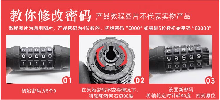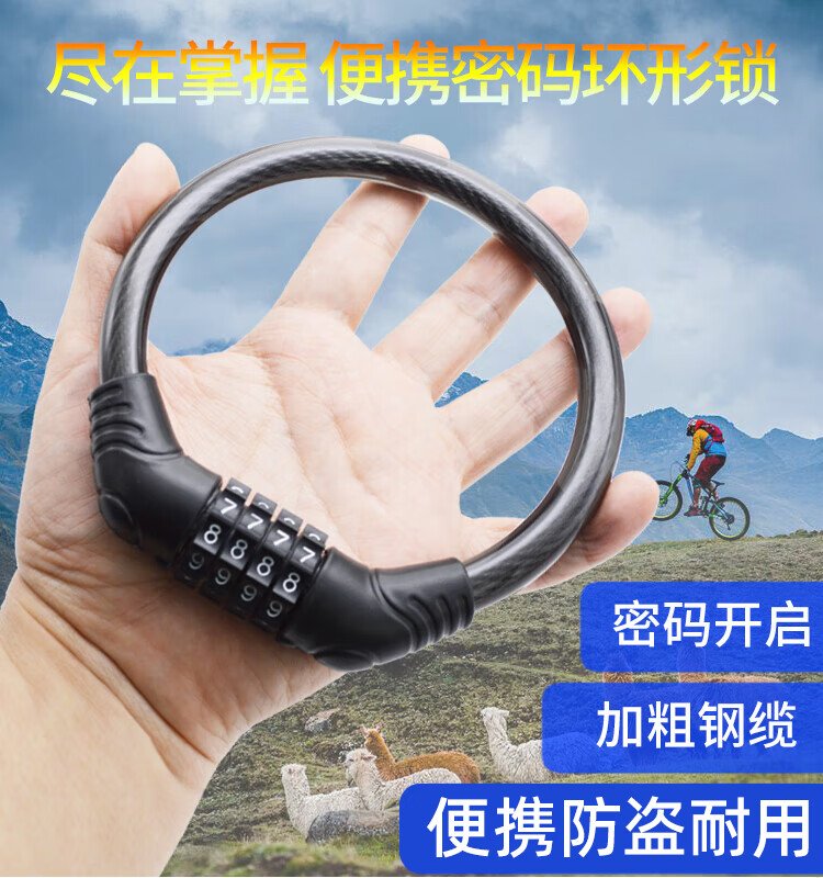 HOTUN mountain bike lock anti-theft portable electric bicycle password lock shaped lock helmet chain HD7204 black