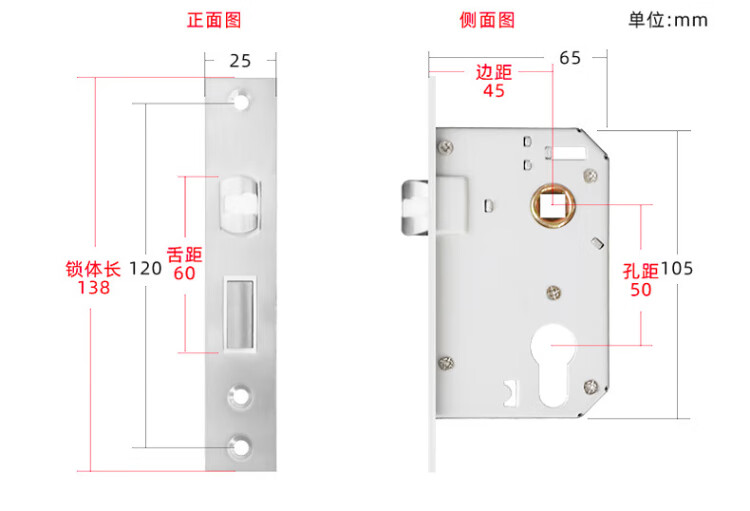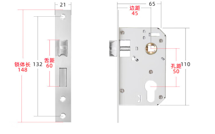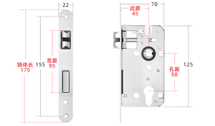 HOTUN lock body wooden door indoor deadbolt door lock accessories universal wooden door lock 5045-160 (87) light steel