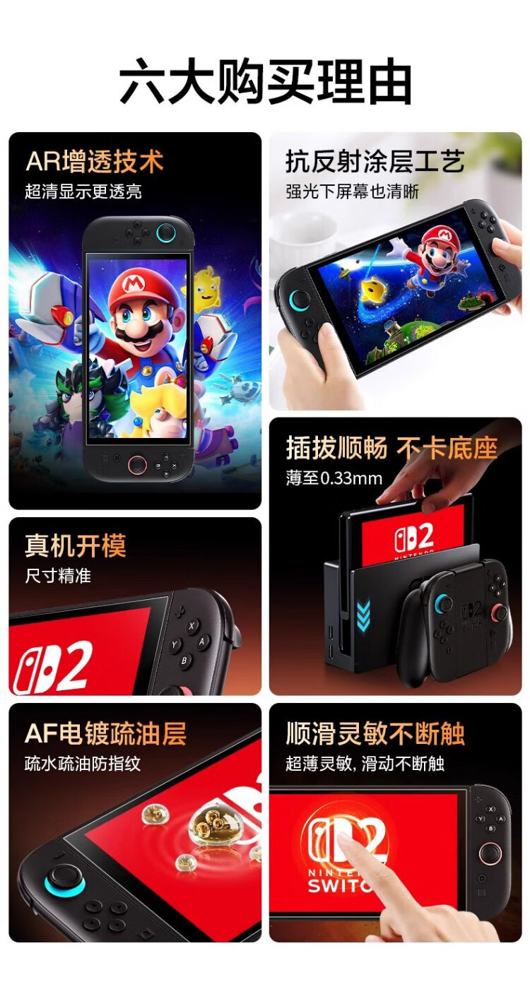 Smorss is suitable for Switch 2 generation HD tempered film 2025 ns2 film is suitable for Nintendo Nintendo game console anti-fingerprint protection accessory screen film