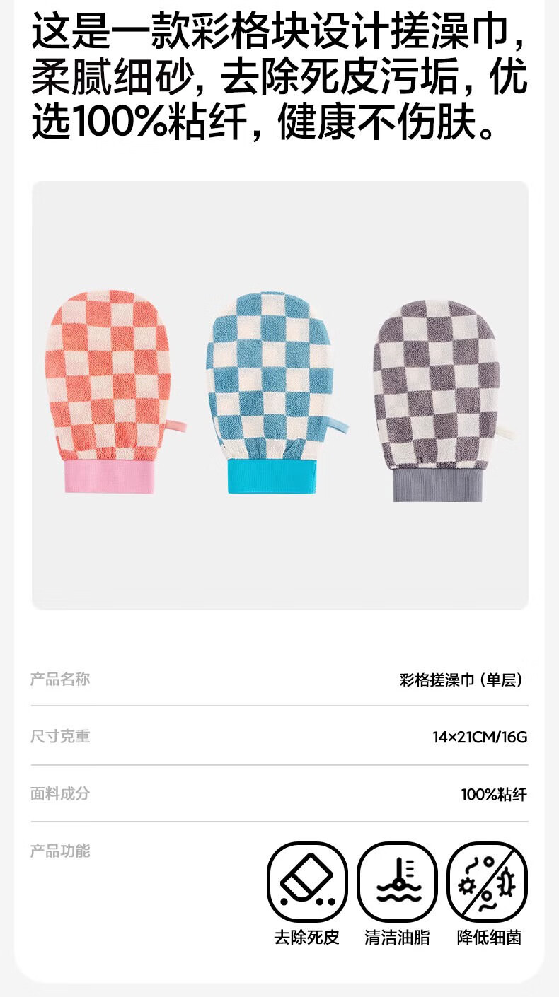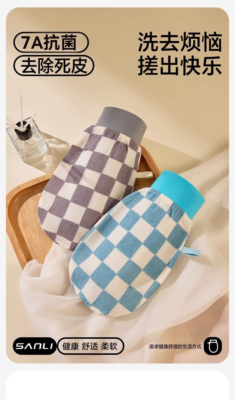 Sanli 7A Antibacterial Color Plaid Bath Towel for Men, Painless Mud and No Damage to Skin, Women's Back and Bath Gloves