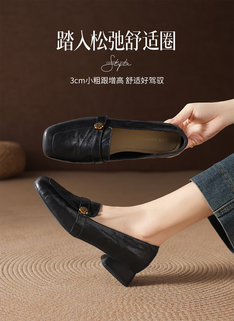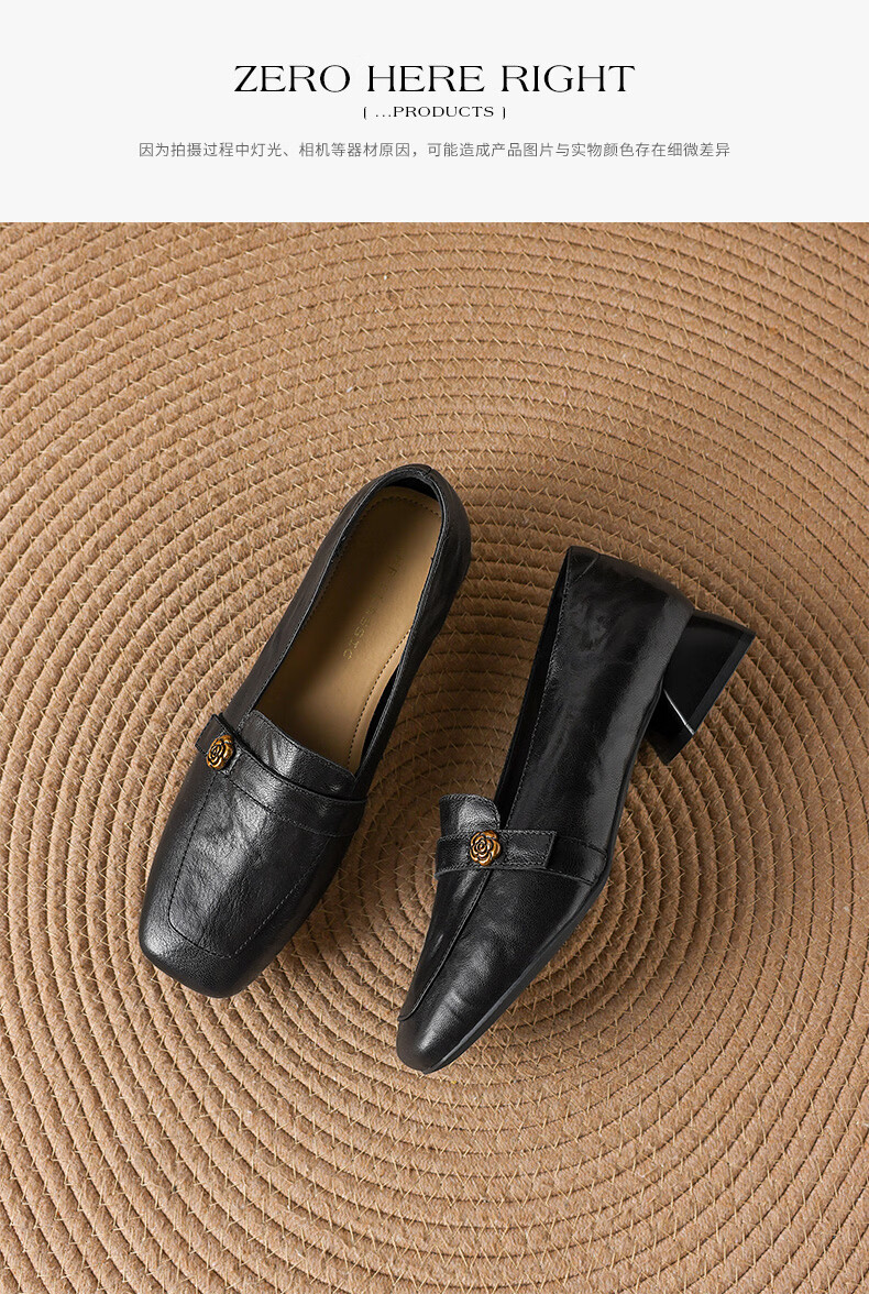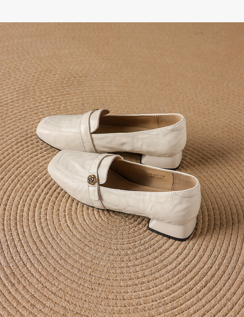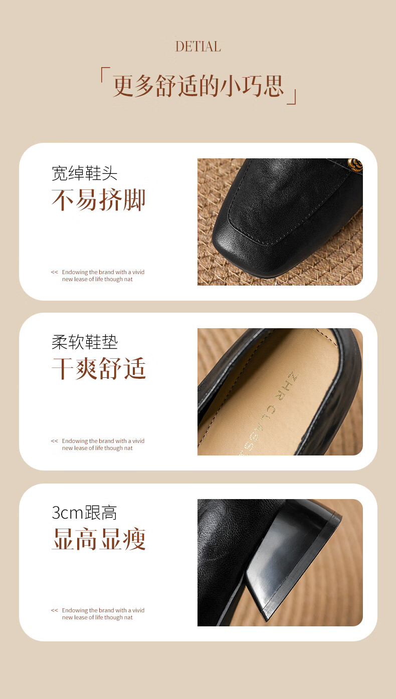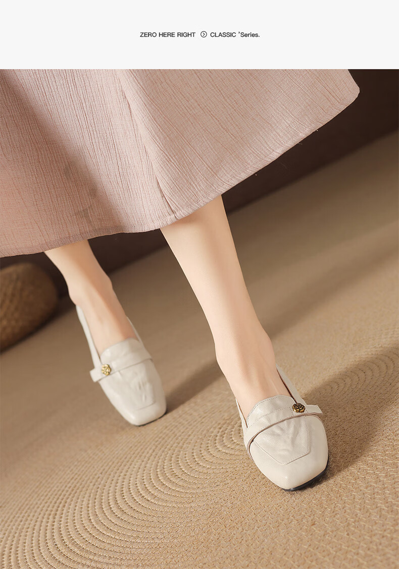 ZHR is the first-layer sheep leather loafers for women with thick heels, square toe work shoes, single shoes, EH317, beige 37