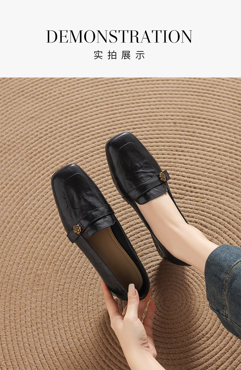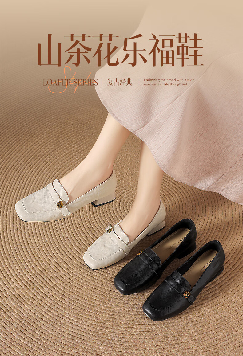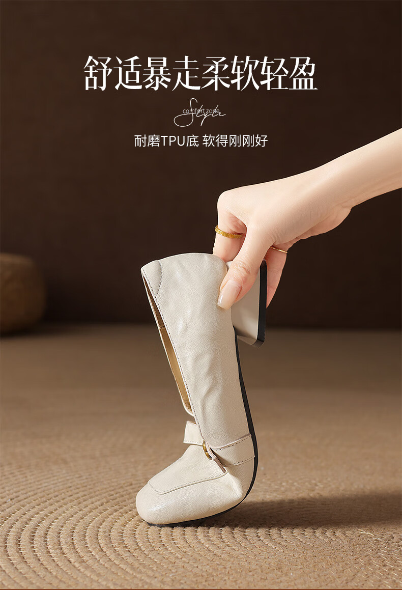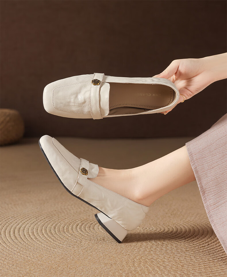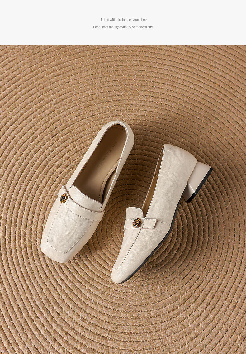 ZHR is the first-layer sheep leather loafers for women with thick heels, square toe work shoes, single shoes, EH317, beige 37