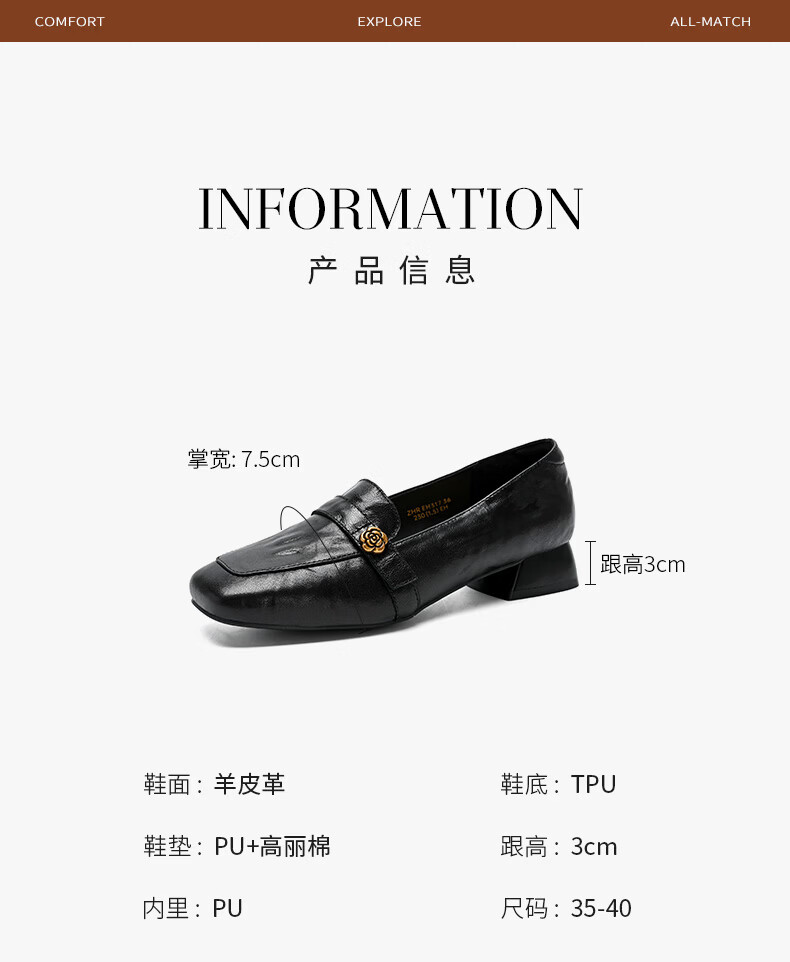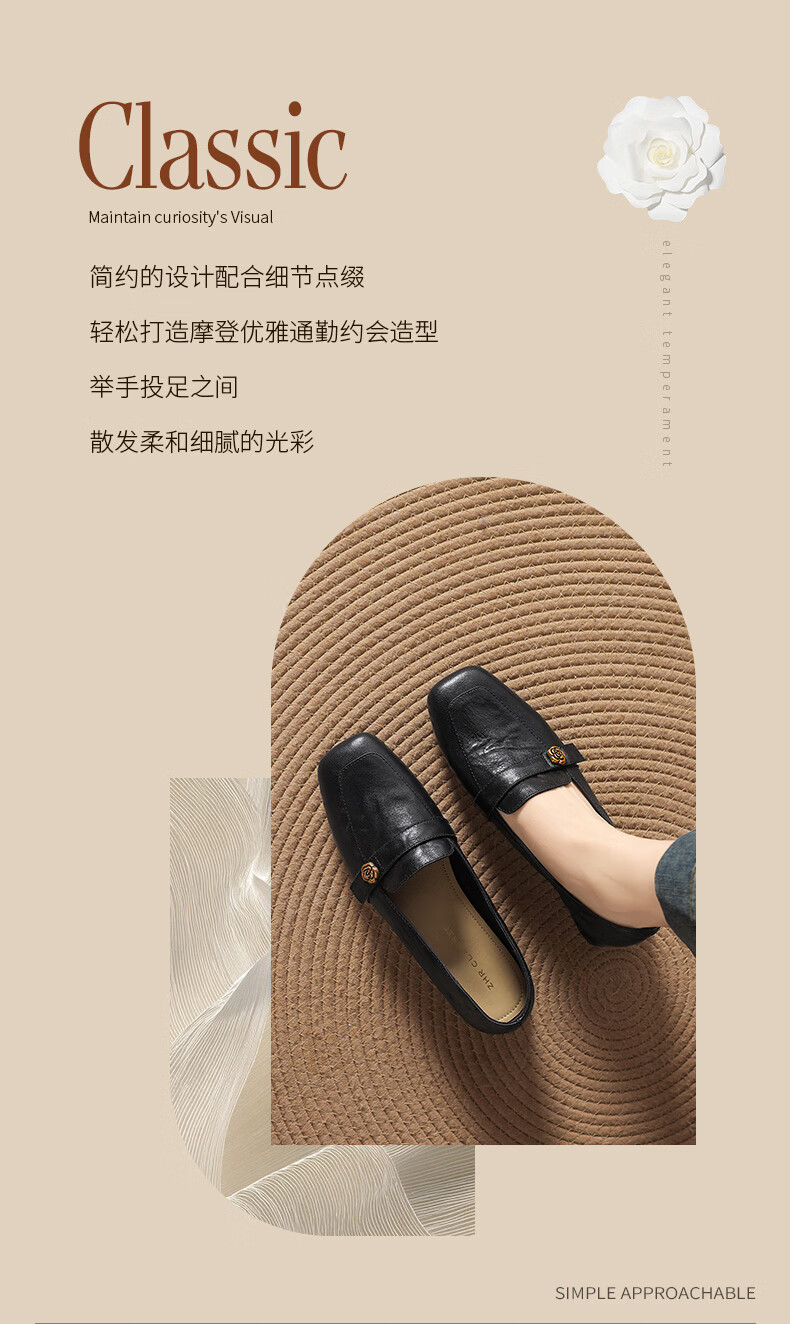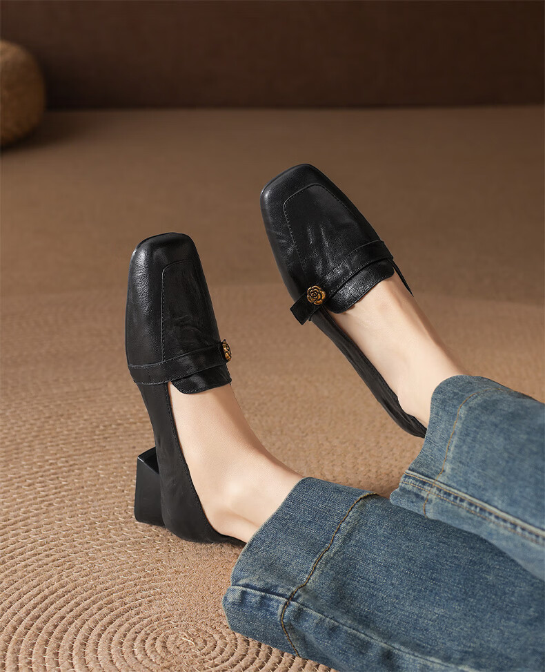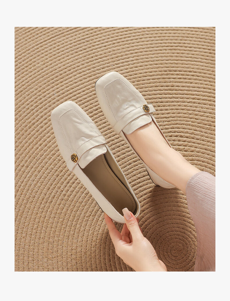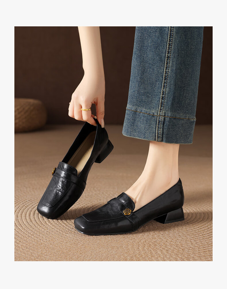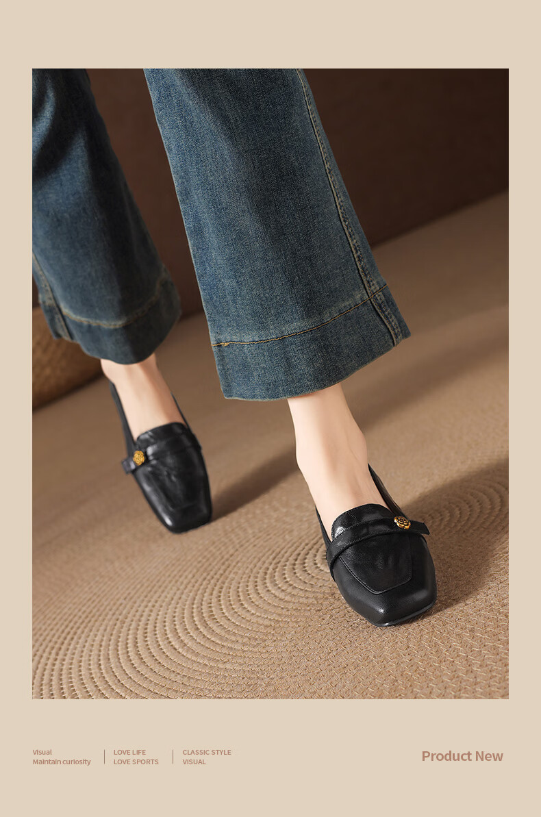 ZHR is the first-layer sheep leather loafers for women with thick heels, square toe work shoes, single shoes, EH317, beige 37