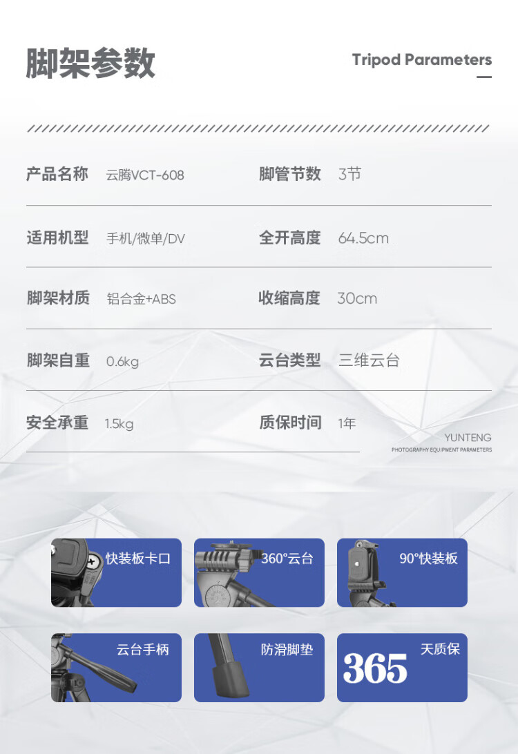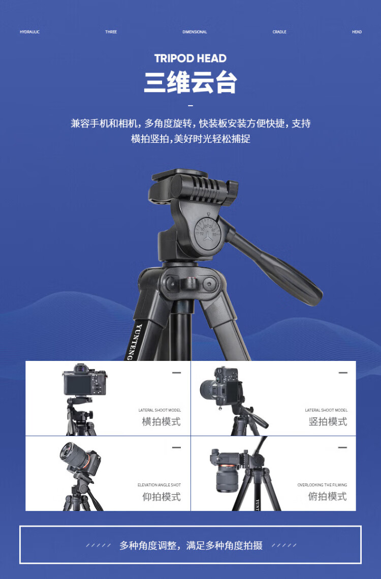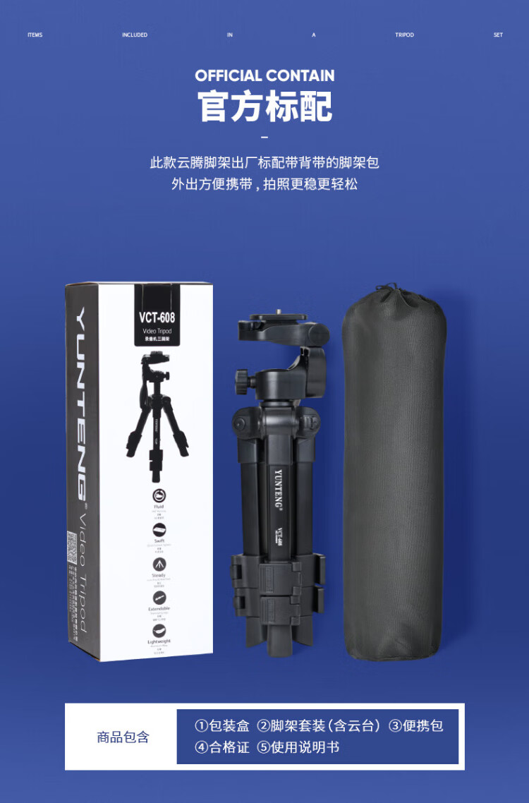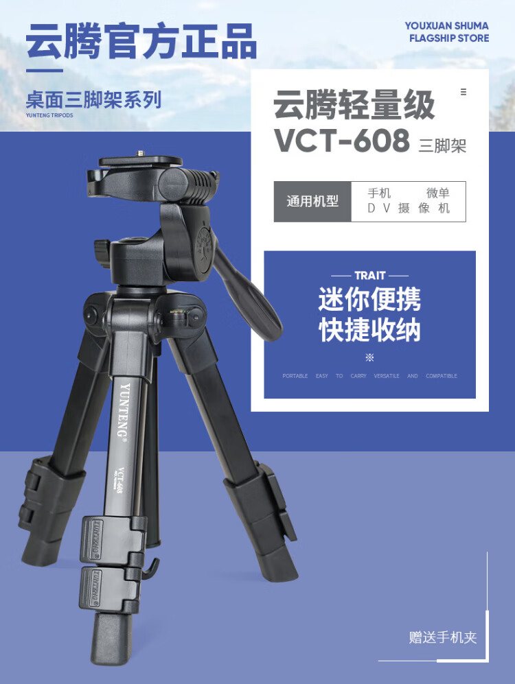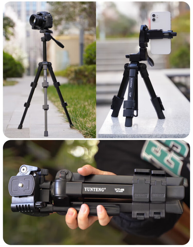 Yunteng 608 lightweight portable multifunctional tripod mobile phone desktop stand SLR mirrorless camera tripod photo video live broadcast selfie video outdoor pan/tilt mini bracket