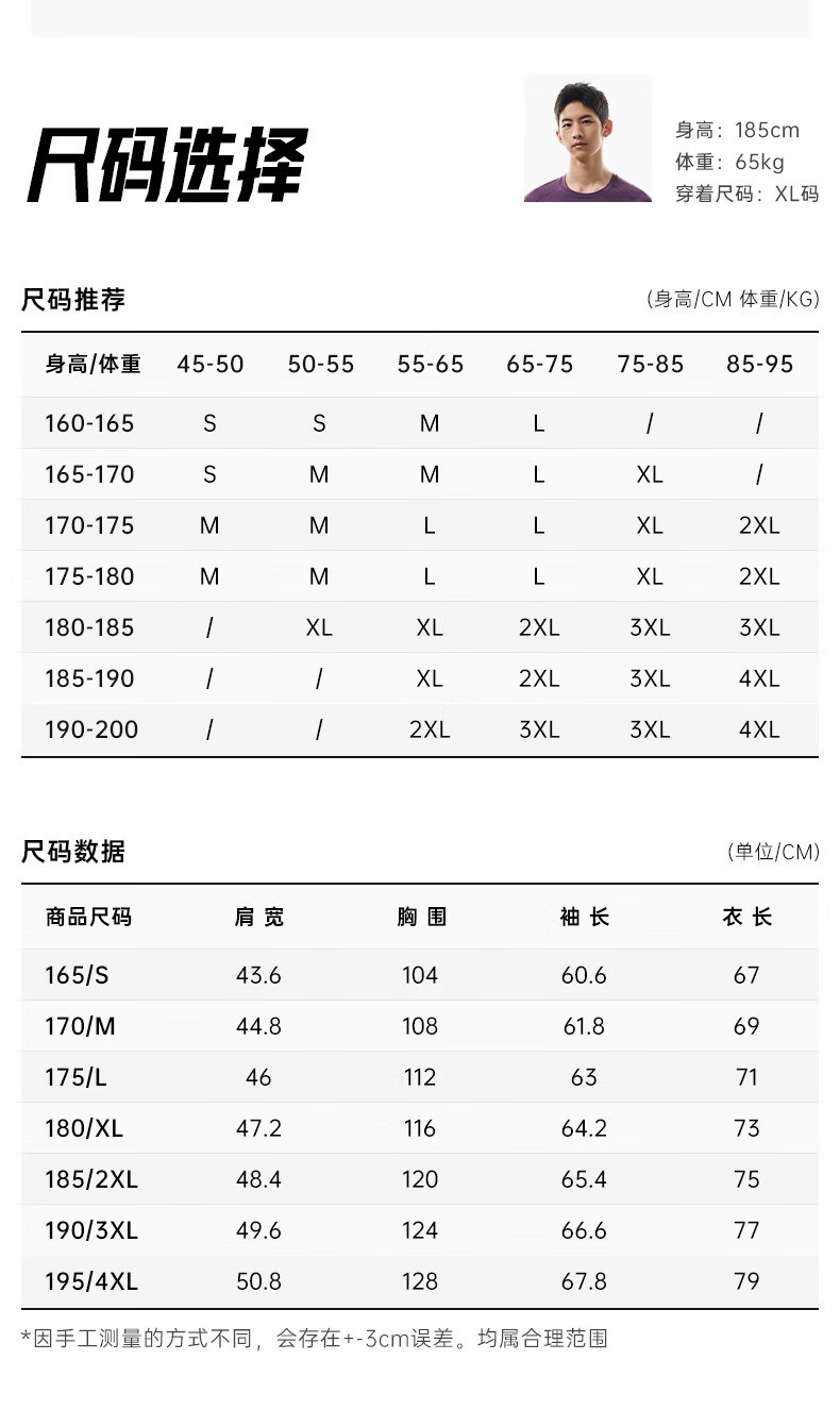 China (cm) 165 / 88-90 170 / 96-98 175 / 108-110 180 / 118-122 185 / 126-130