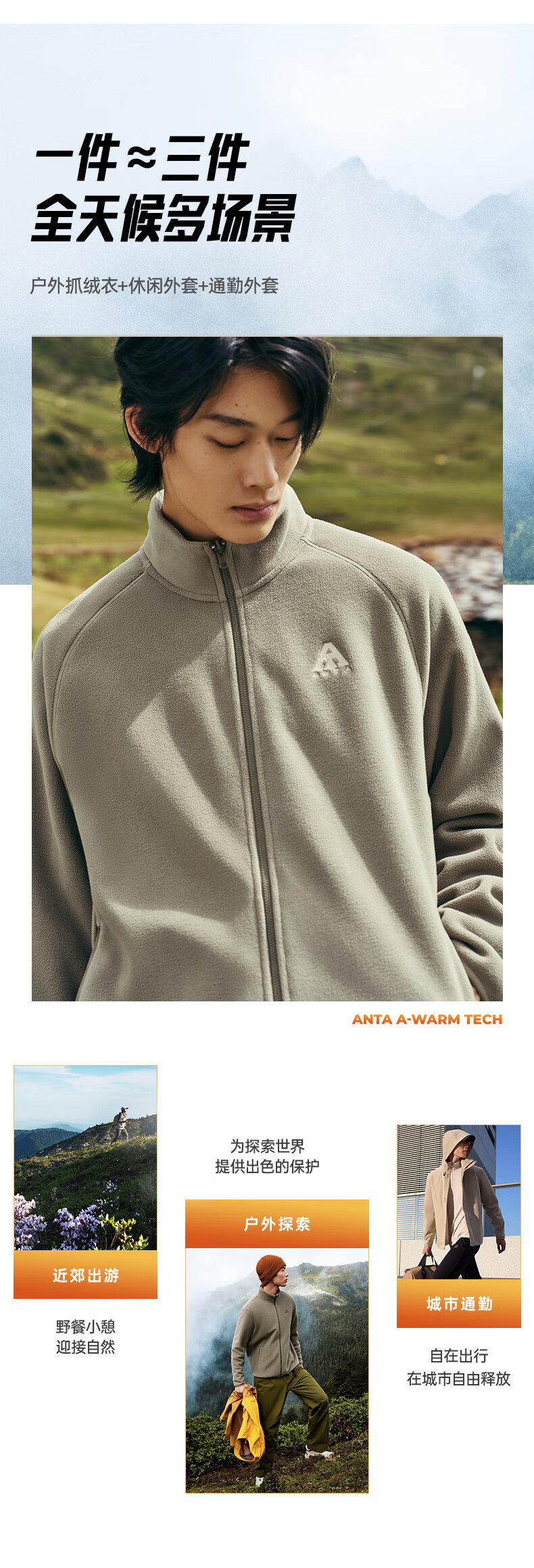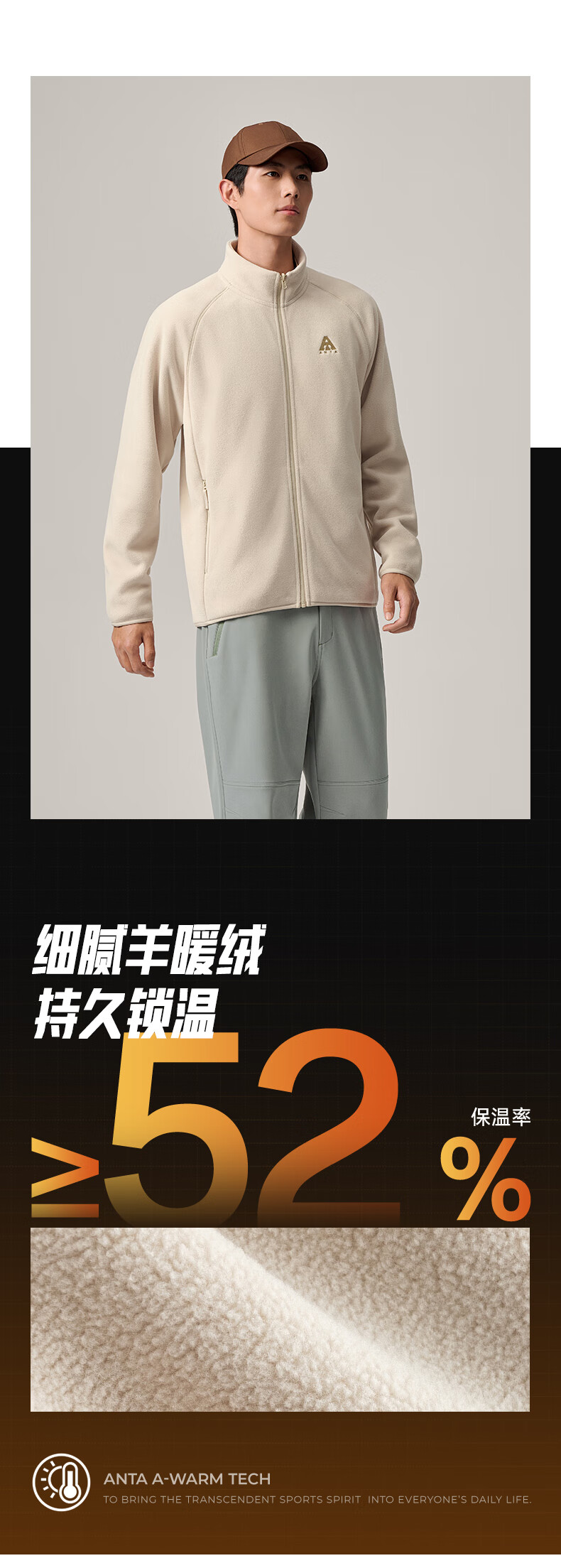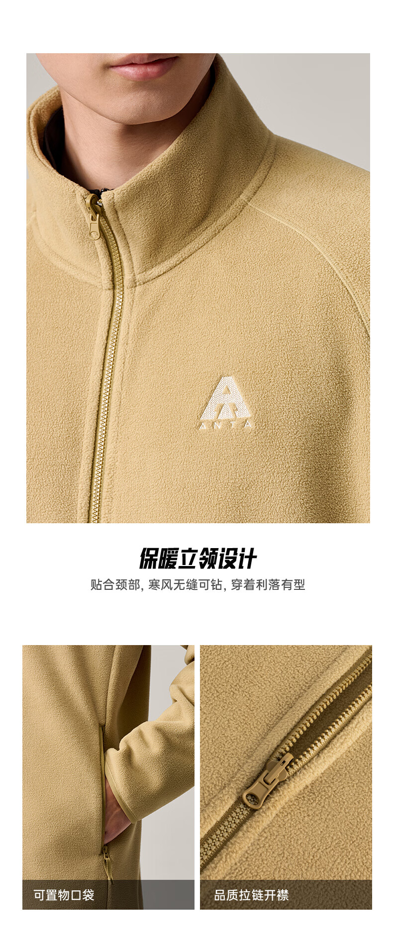 Anta Brother Z's same style fire shell fleece jacket丨Earth Shell 3.0 winter men's lining polar fleece stand-up collar jacket