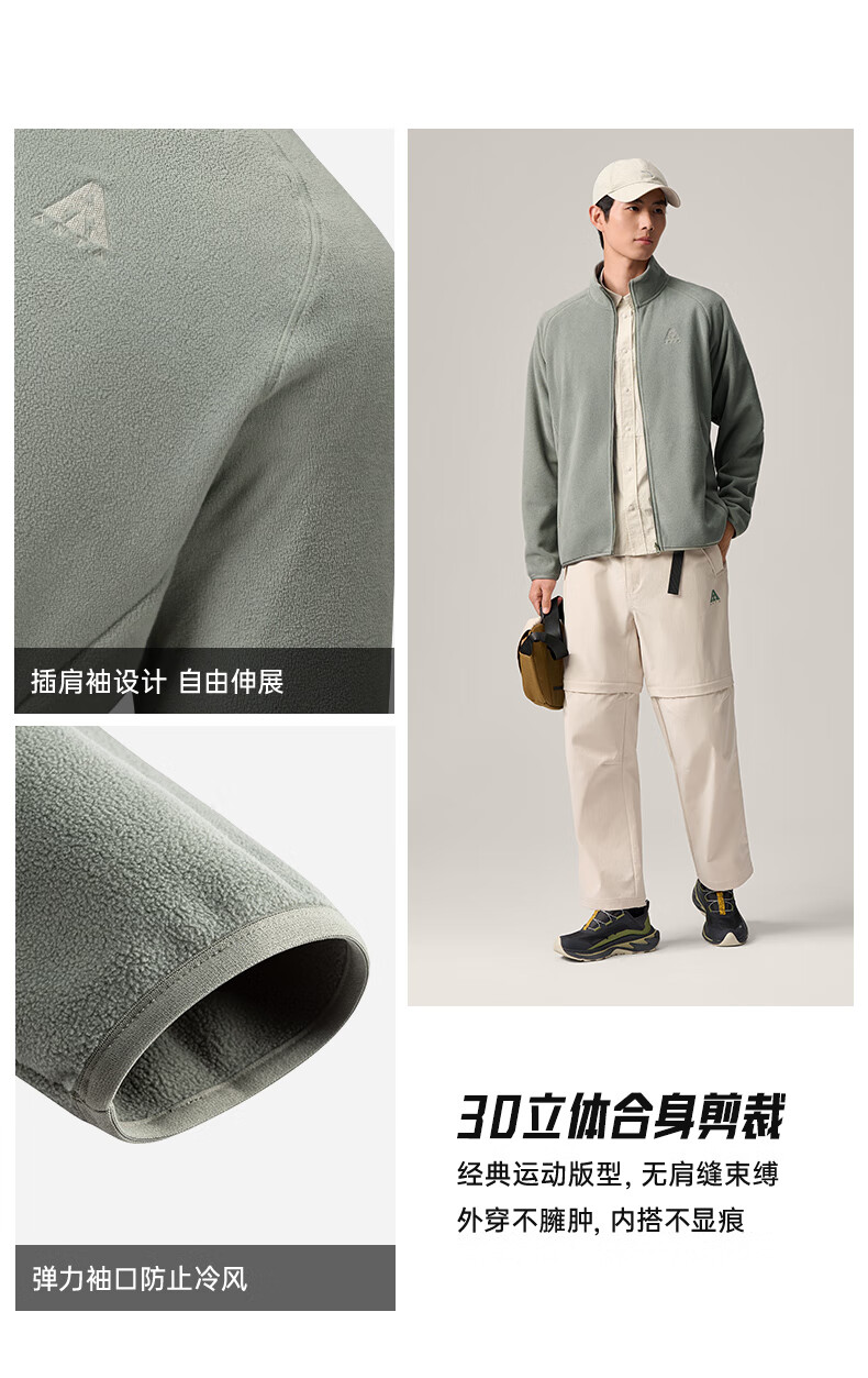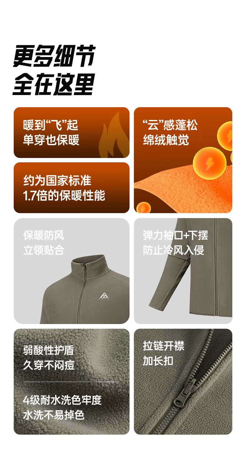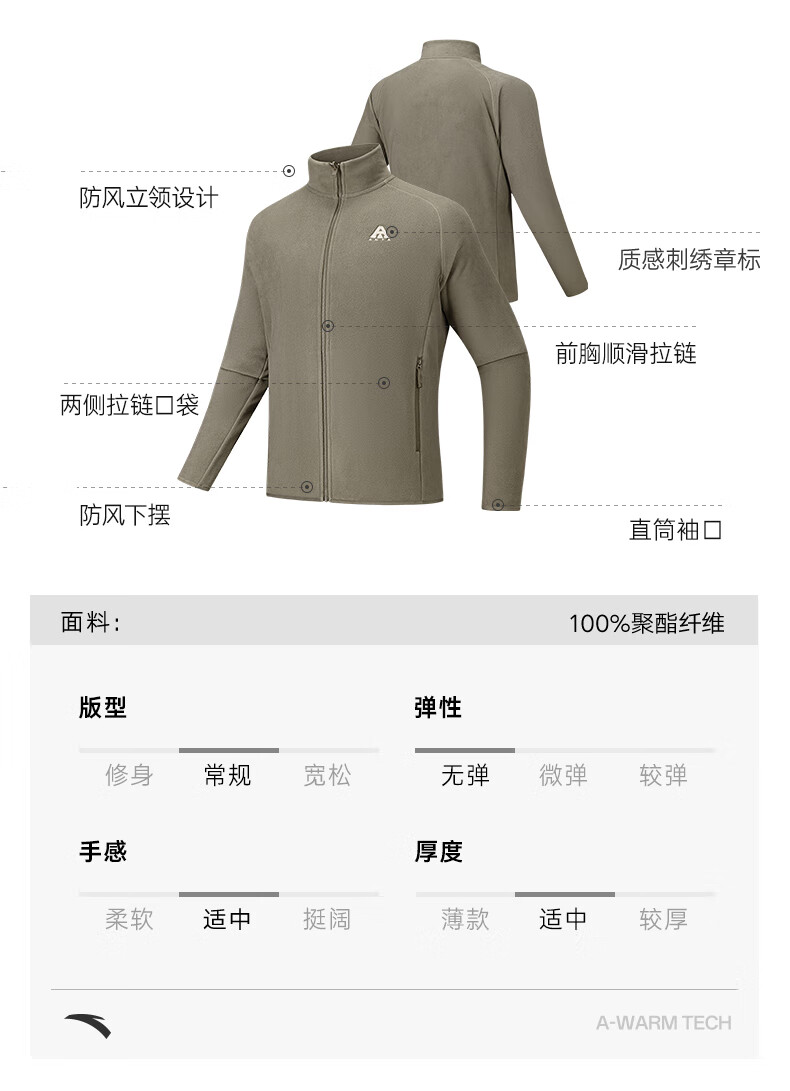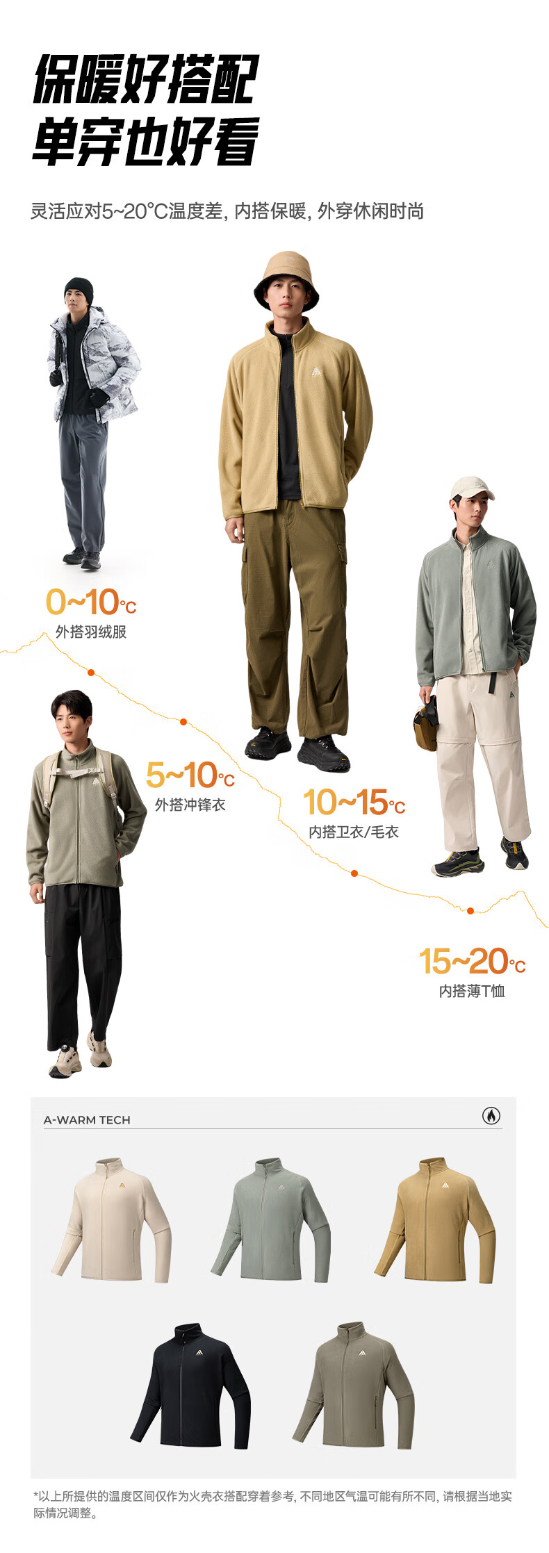 Anta Brother Z's same style fire shell fleece jacket丨Earth Shell 3.0 winter men's lining polar fleece stand-up collar jacket